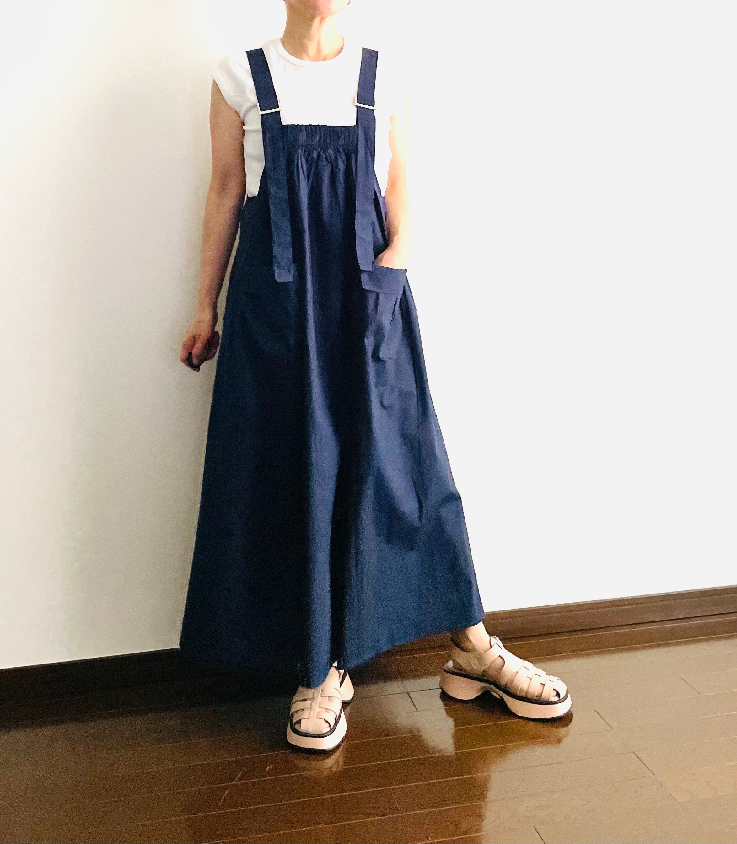 サロペットマキシ丈ジャンパースカート