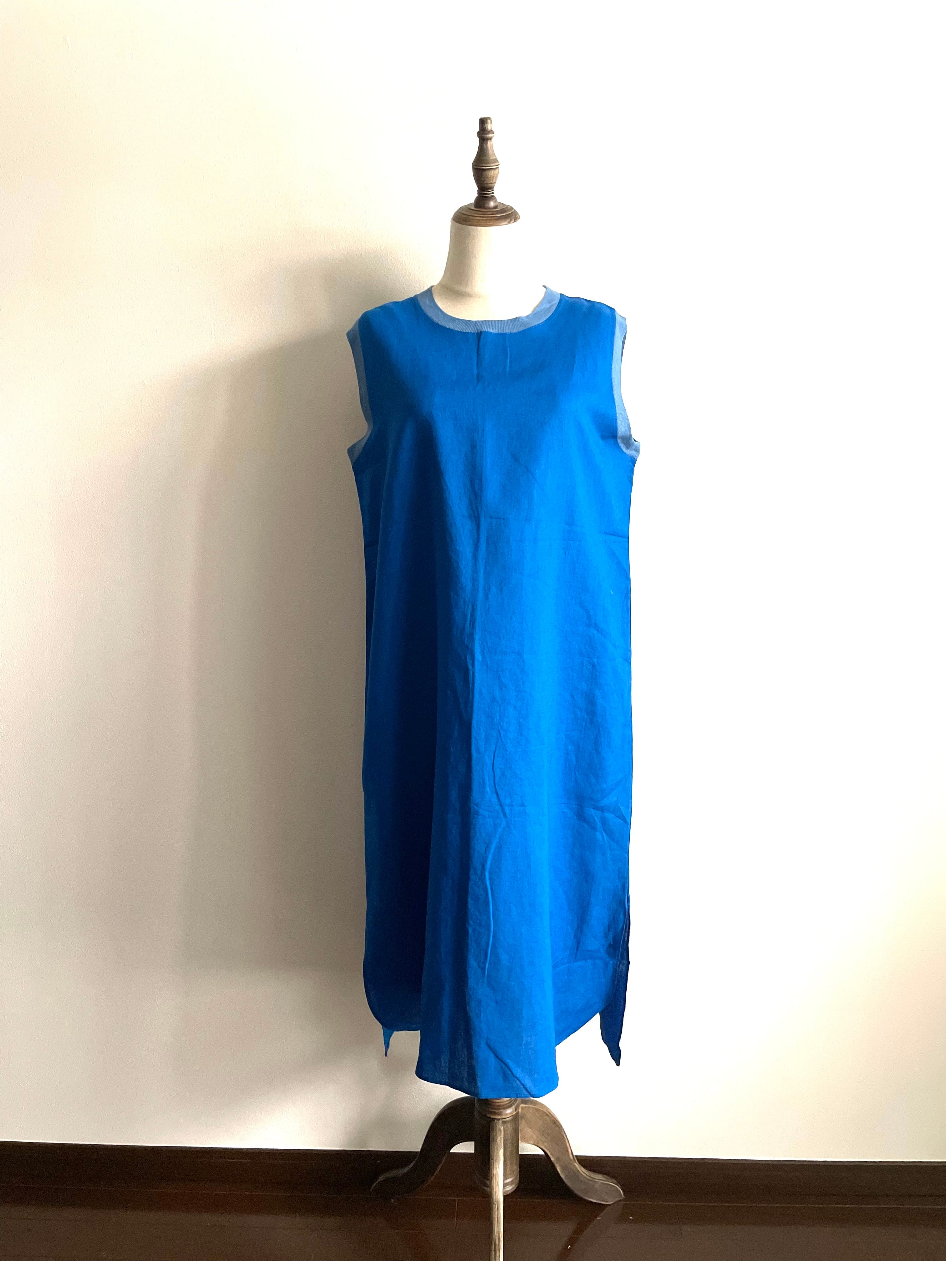 リネン100%リブネック_ストレートワンピース(インナー付き)