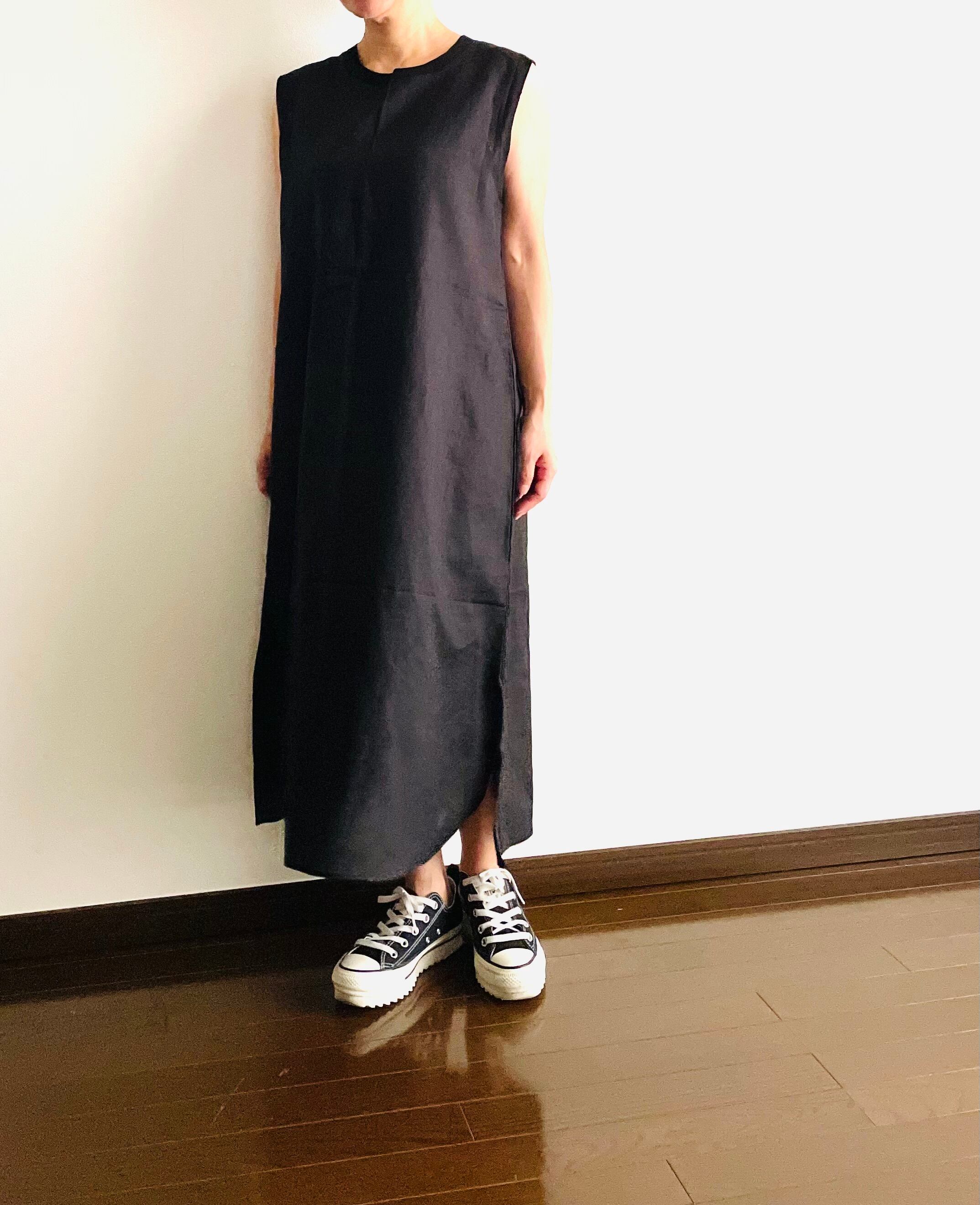 ロングタンクトップのインナー付き(黒)なので、リネン素材のワンピースの透け感もしっかりカバーした、この夏とっても活躍できる一枚です。