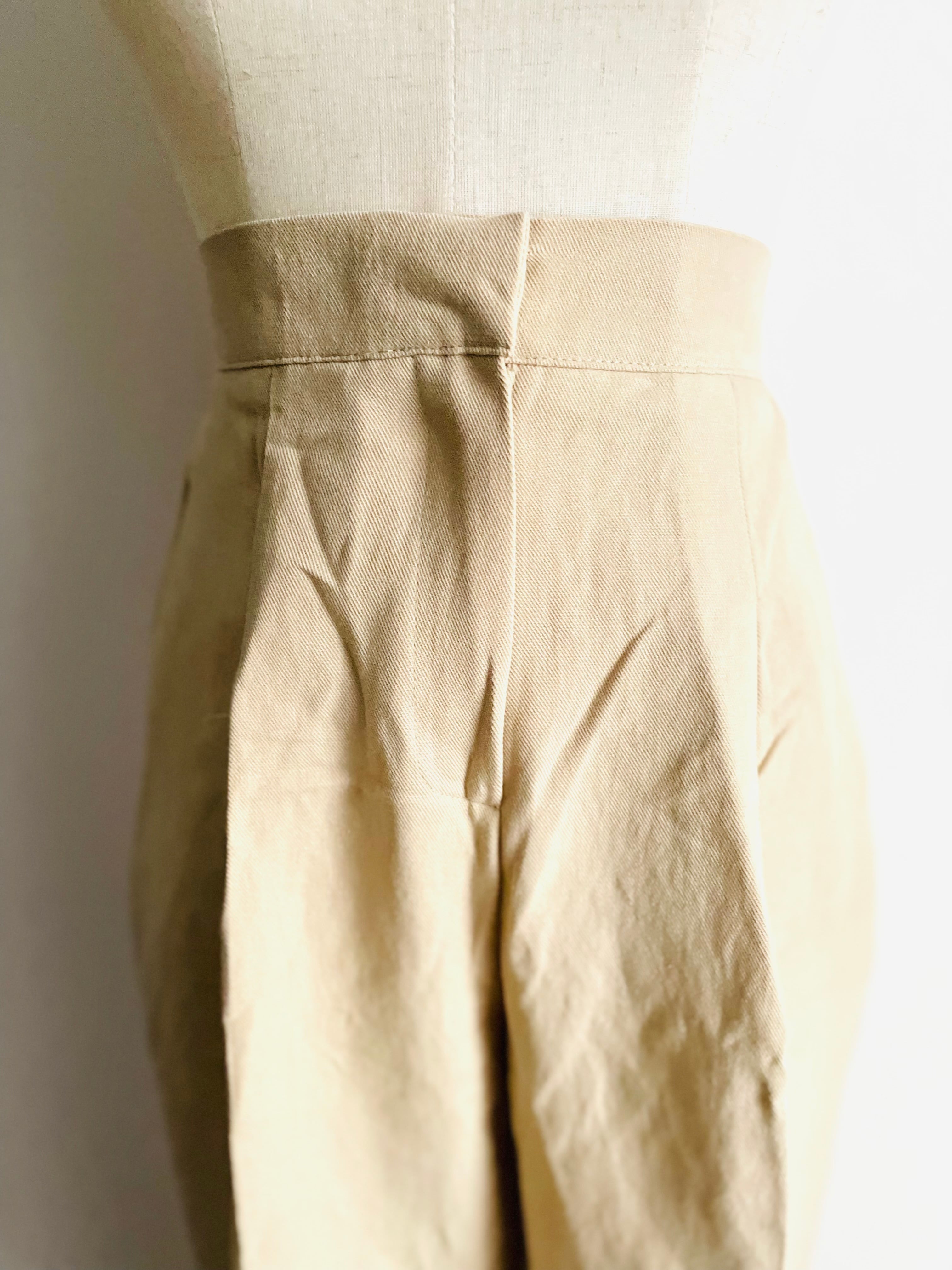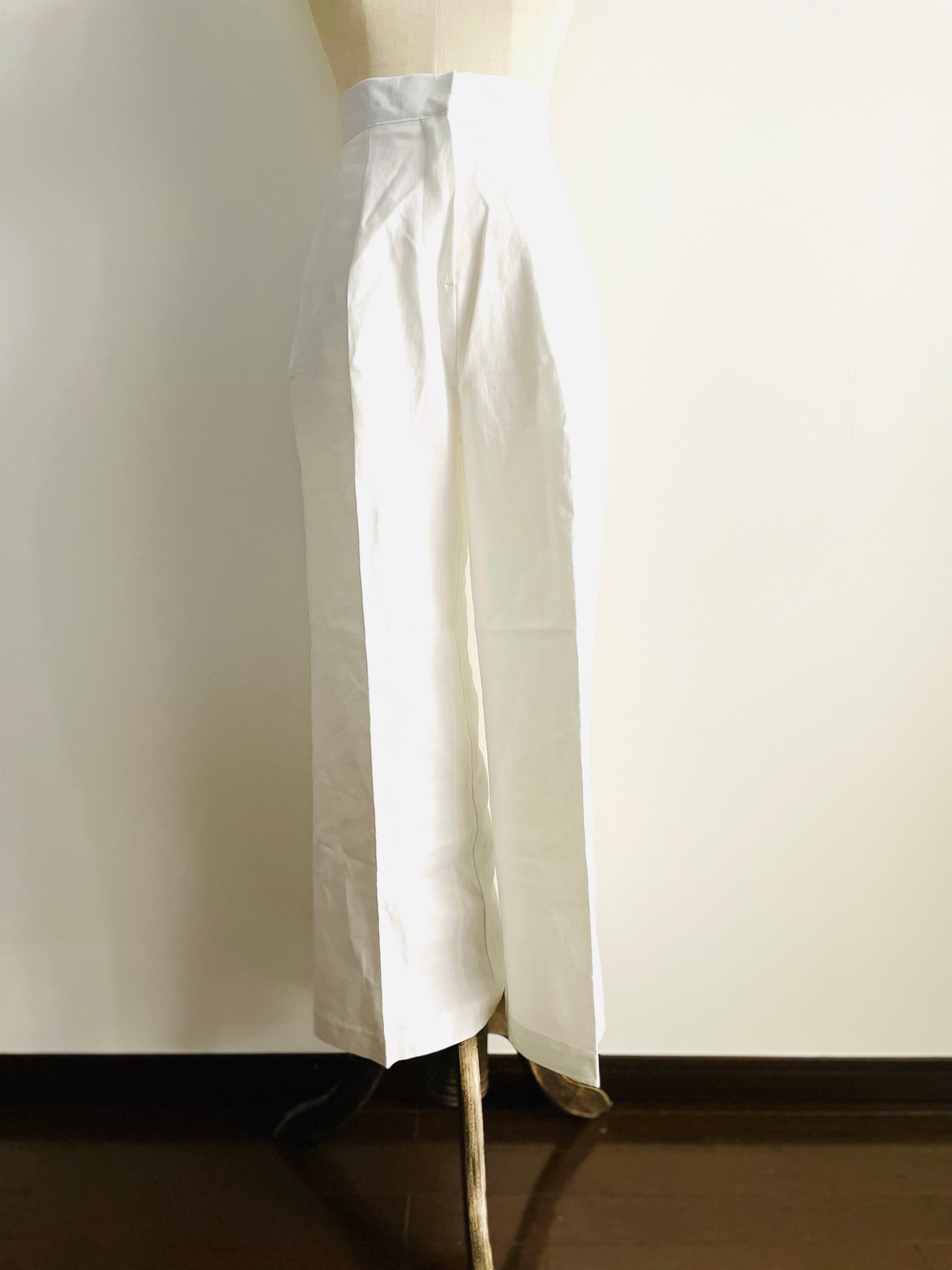 しっかりとした上質な厚手コットンとリネンの混合素材のパンツセットアップ。