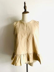 上品なペプラム型のトップスと、タック入りのワイドシルエットのパンツがとてもバランス良く、スタイル全体をきれいにまとめてくれます。また、素材の質感も良いので高級感もあり、それぞれ単品でも使える優れもの。カラーはダークネイビー、キャメル、ホワイトの全3色。このセットアップはとってもお得なオススメアイテムです。