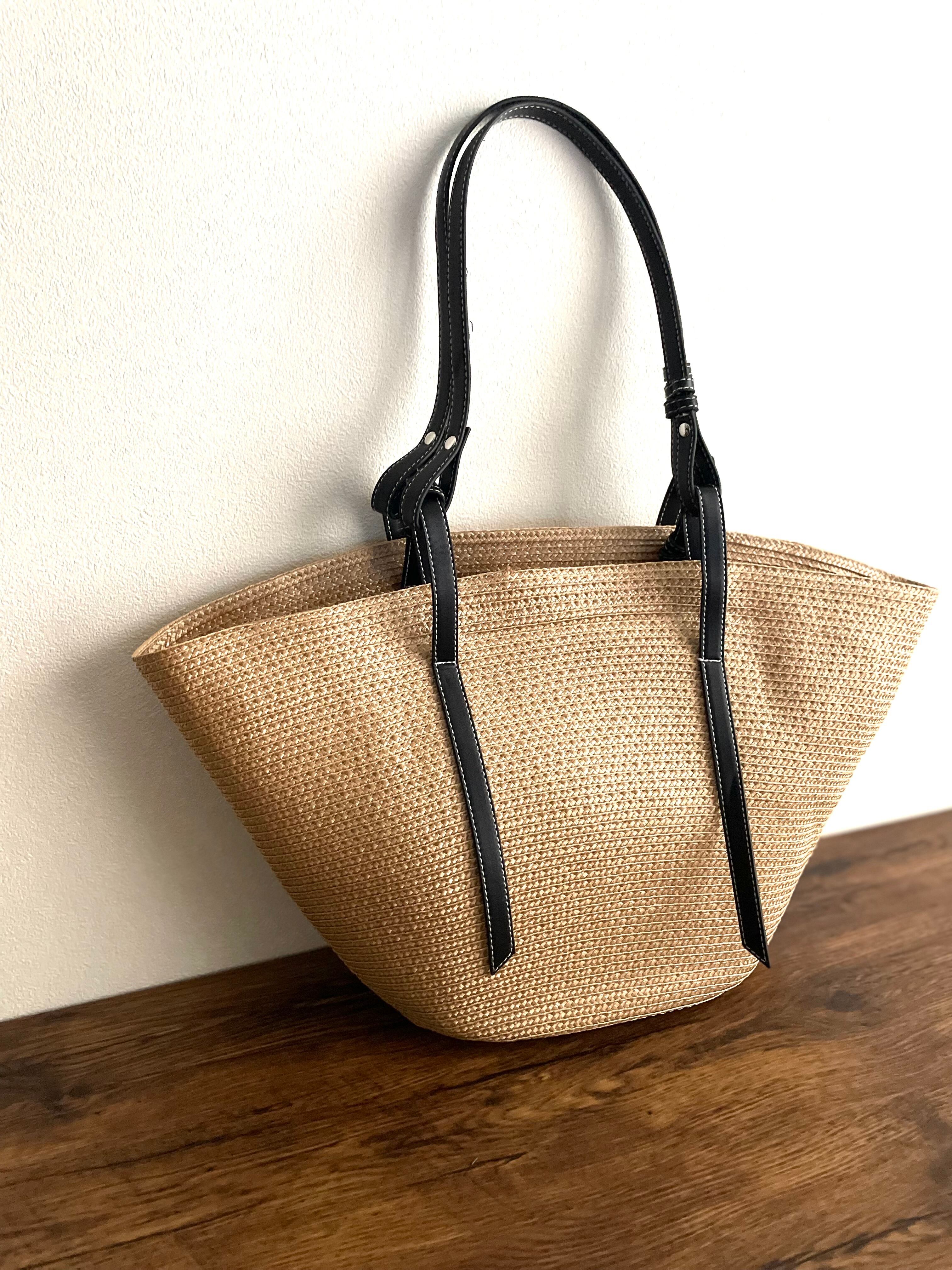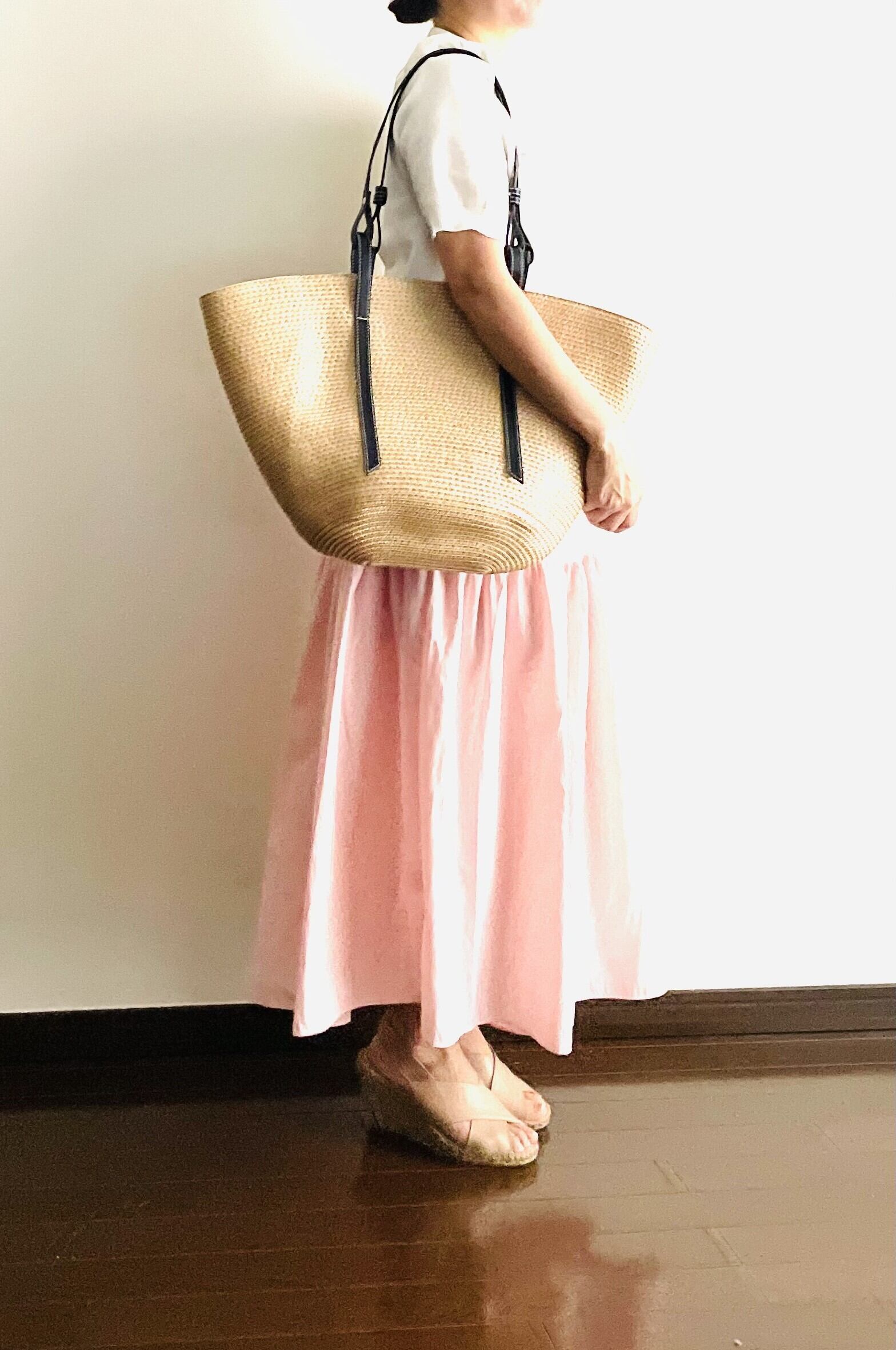 軽くて丈夫なストロー素材を細かく編んだビッグサイズのカゴバッグ。