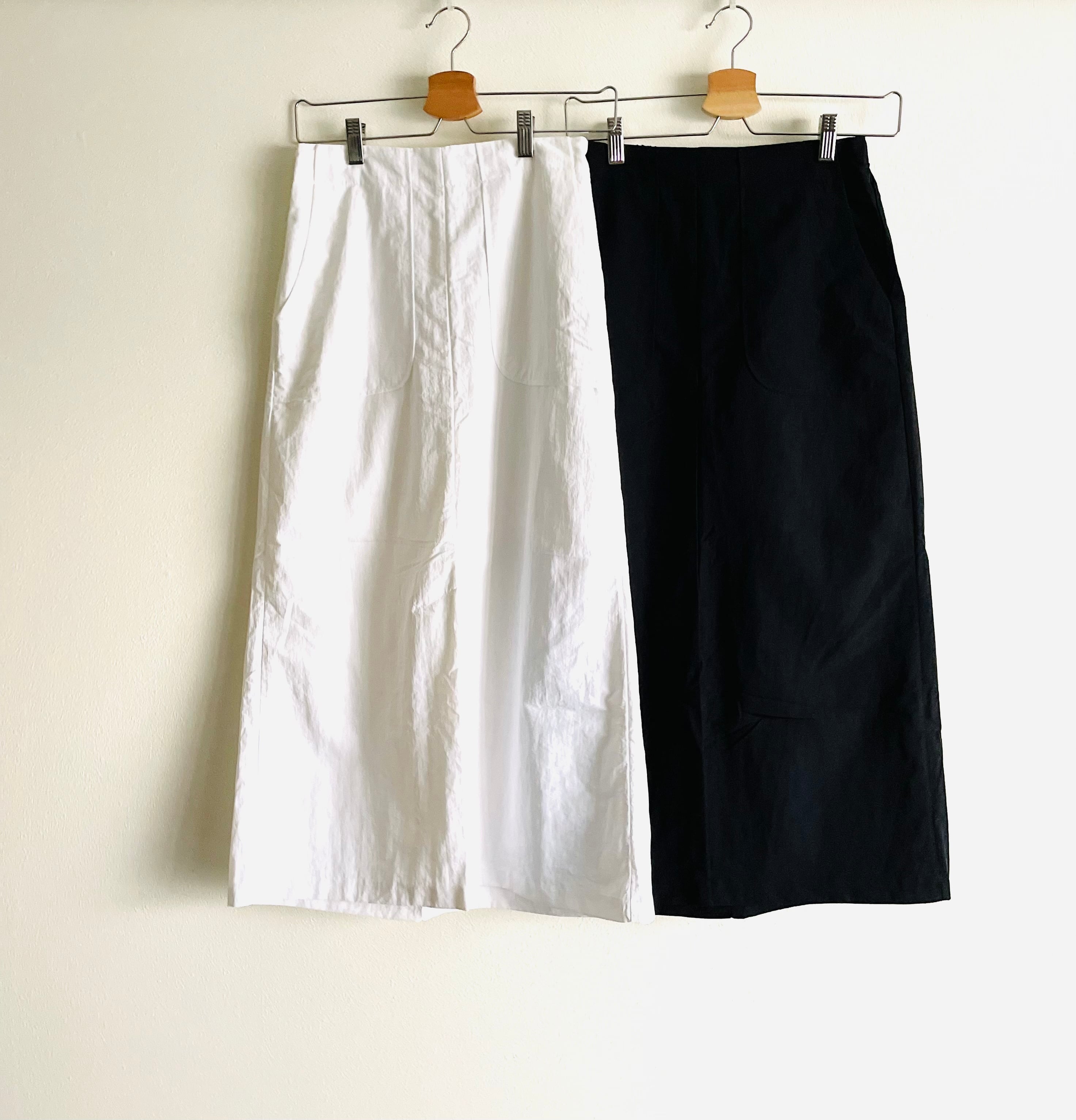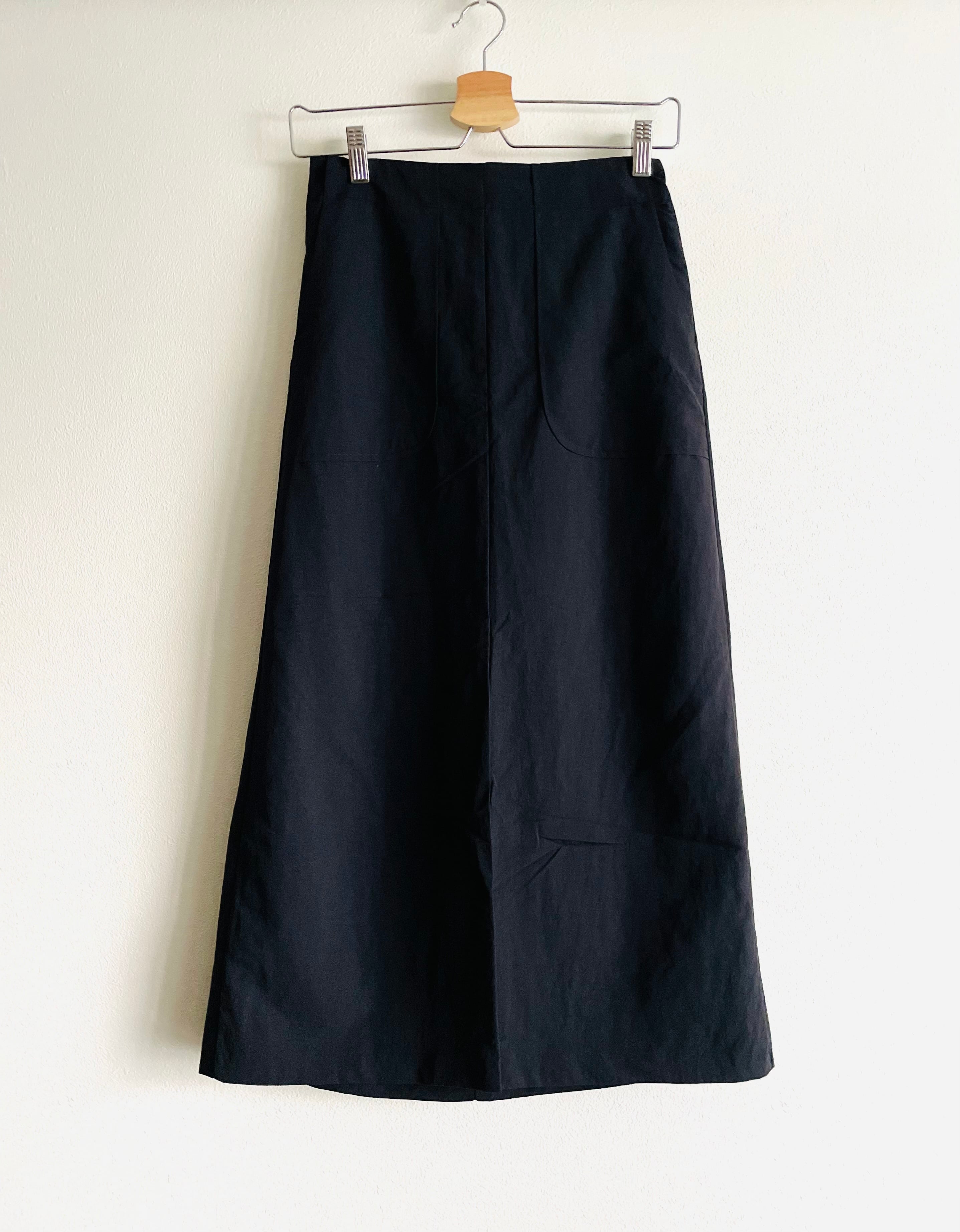 ストレートのボックスシルエットで、フロントには歩きやすくスリットが入っています。