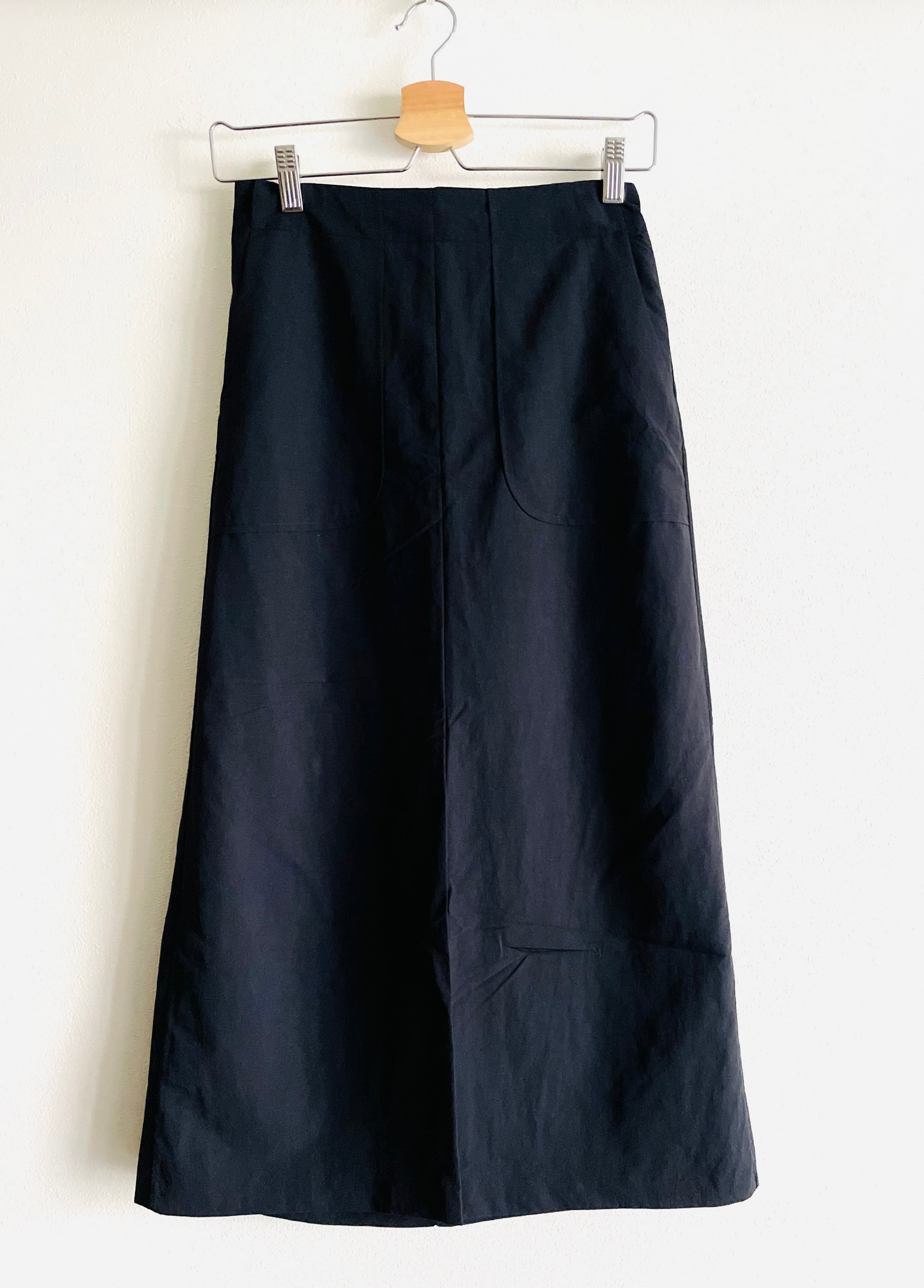 シャカシャカ素材のポリエステル100%ロングスカート。