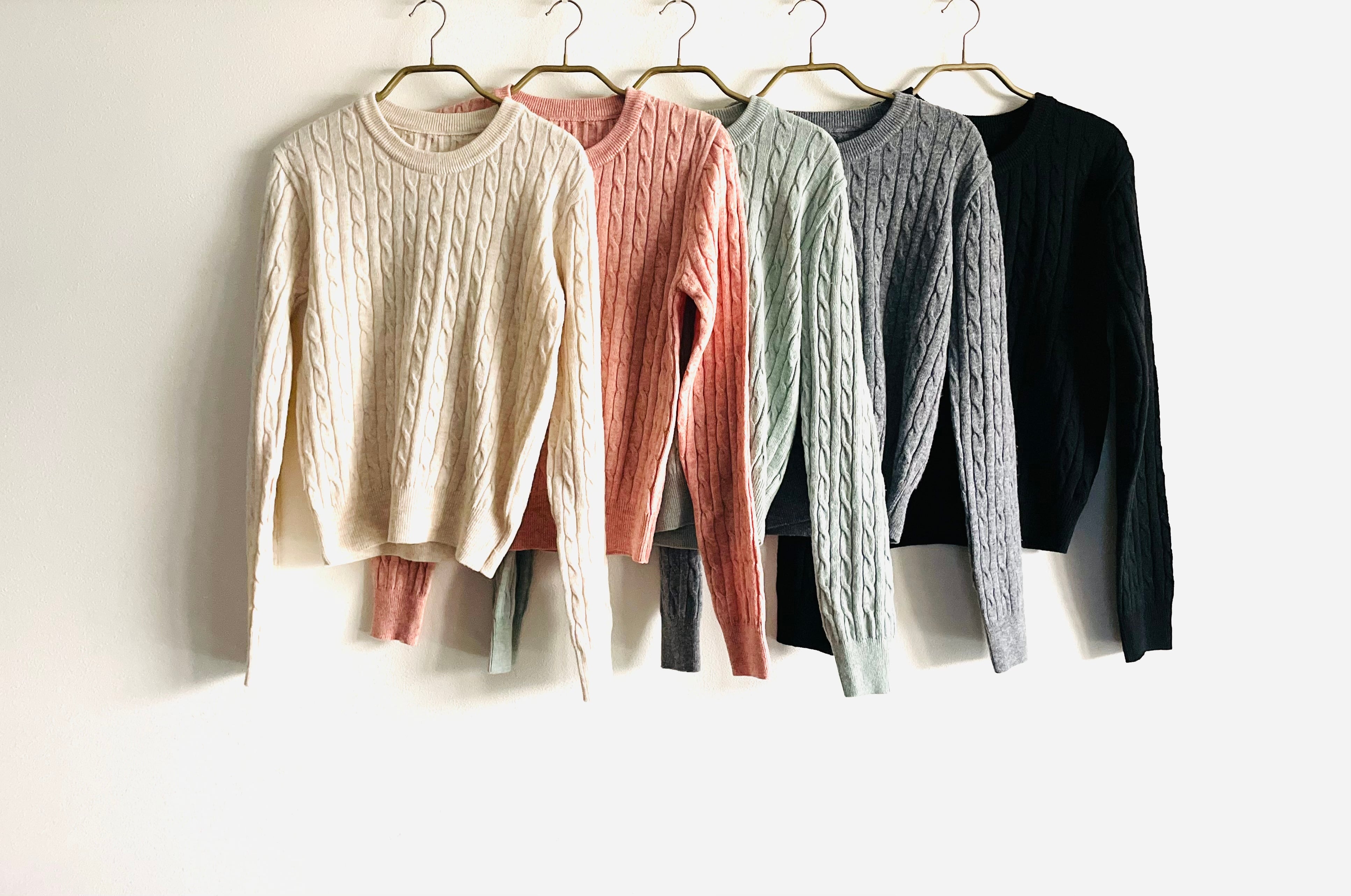 太い縄のような編み目が特徴のケーブルニット。