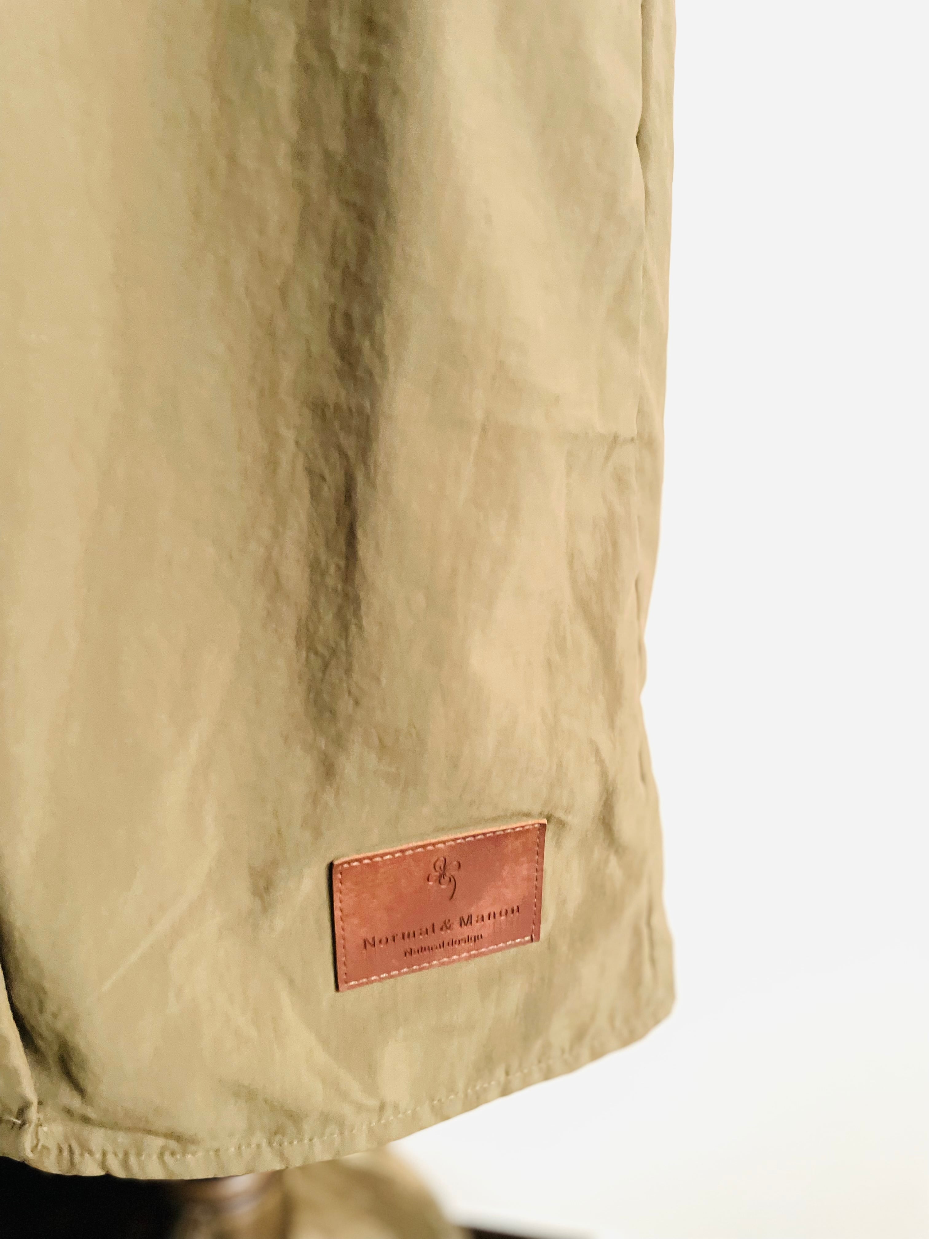 表地はシャカシャカとしたポリエステル&コットン素材、裏地はスウェット生地で、軽くて暖かく、秋~冬にかけて便利に使える一枚です。