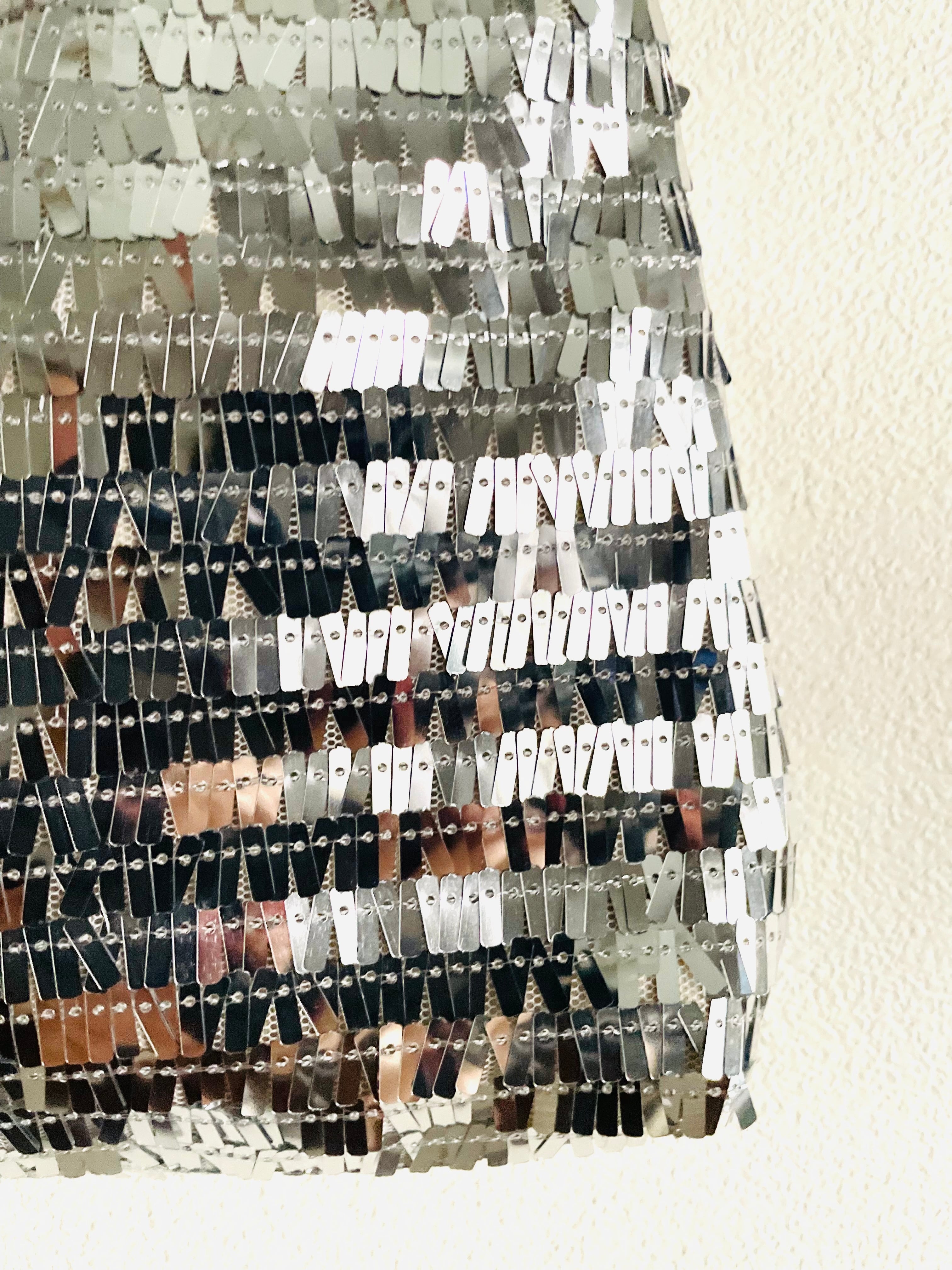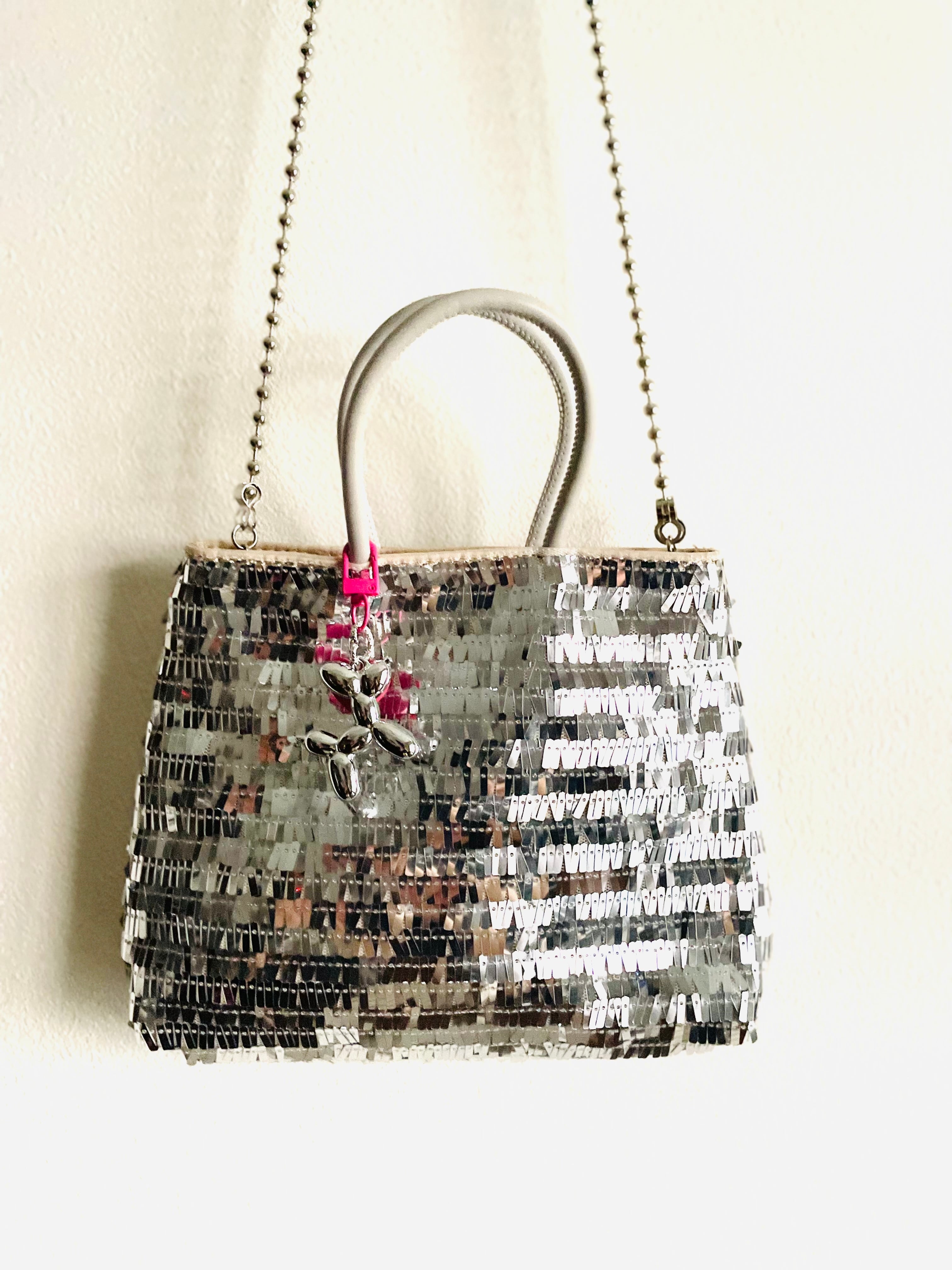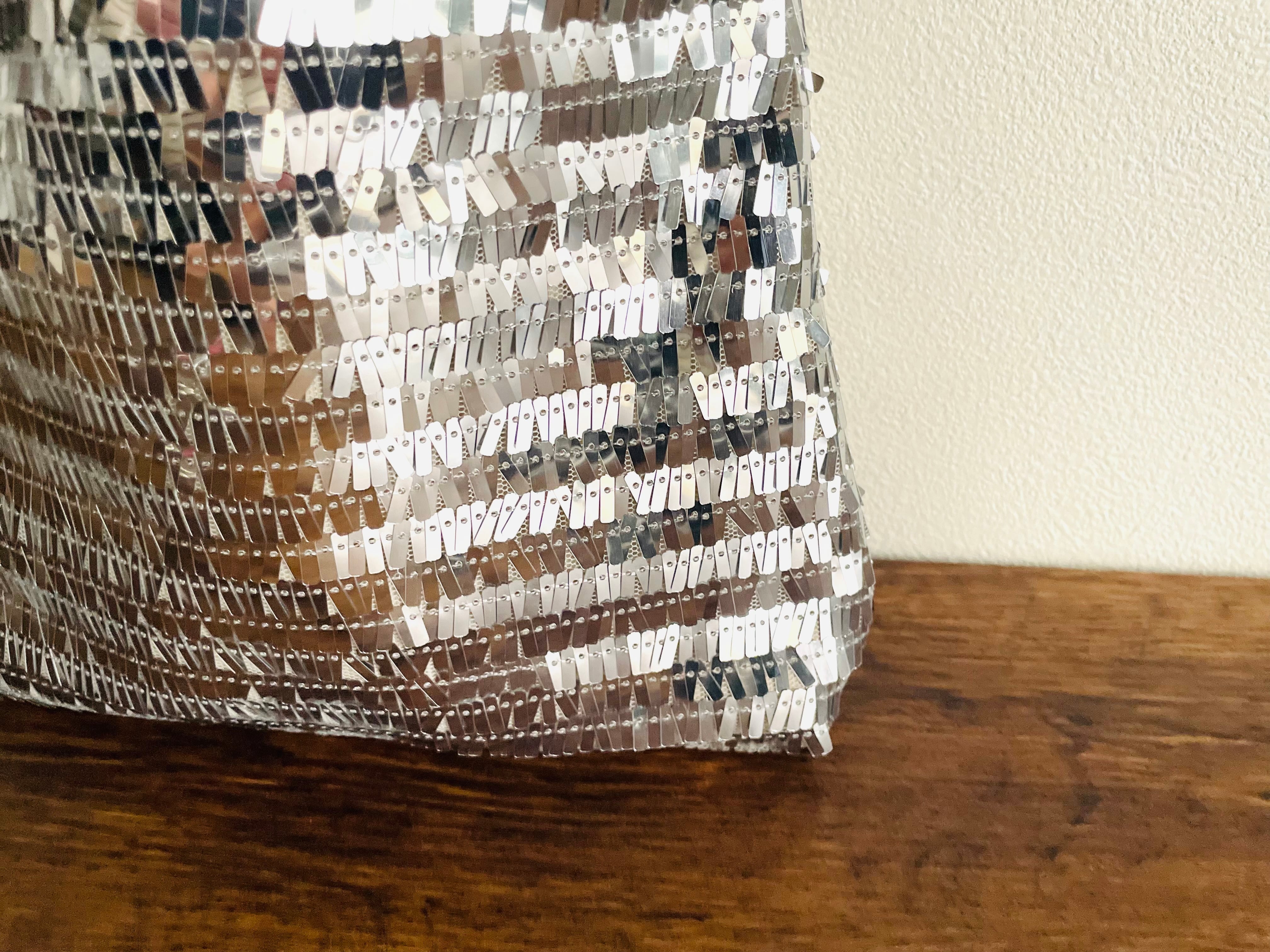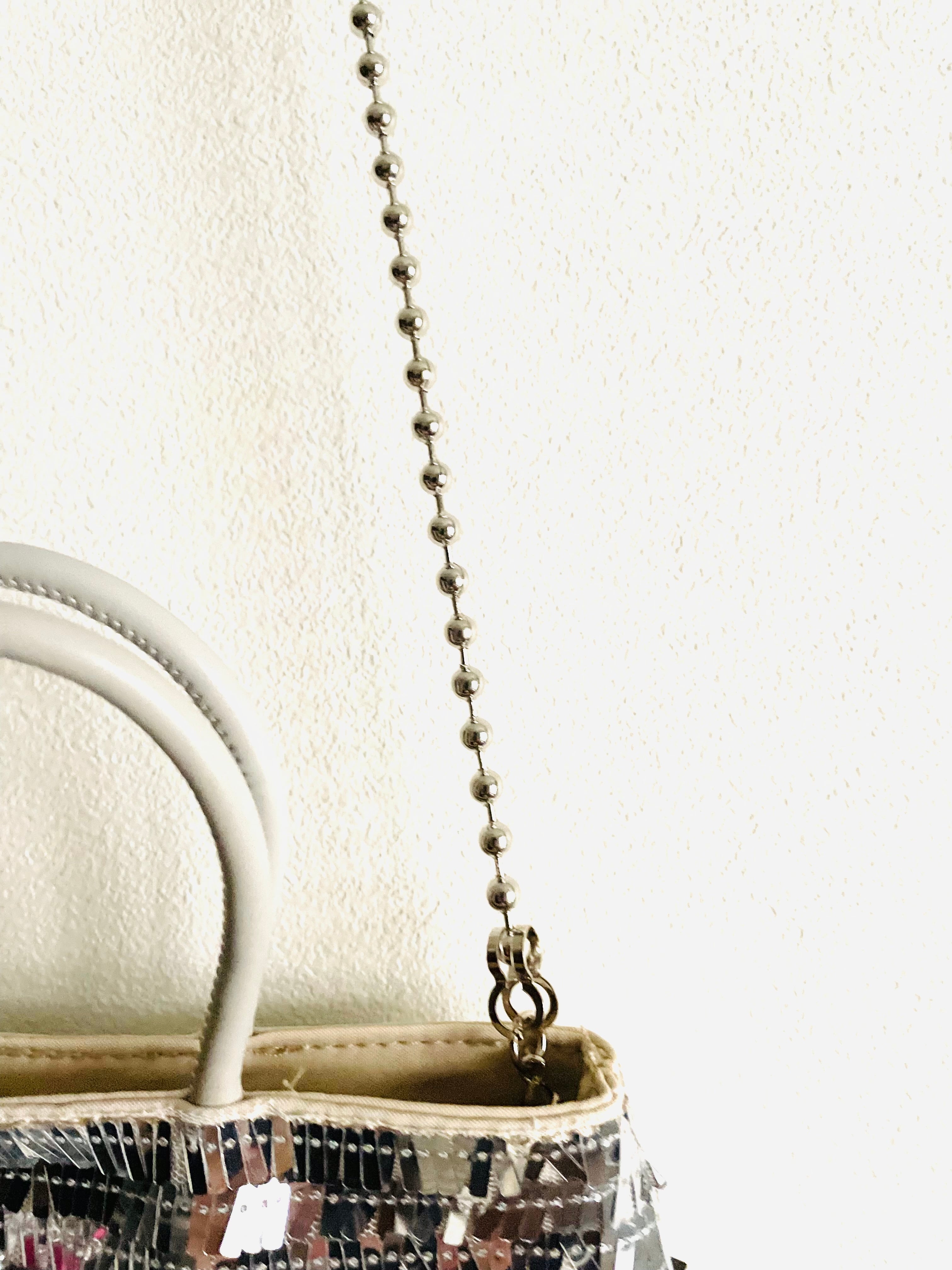 スパンコールが全面に輝く華やかなミニショルダーバッグ。