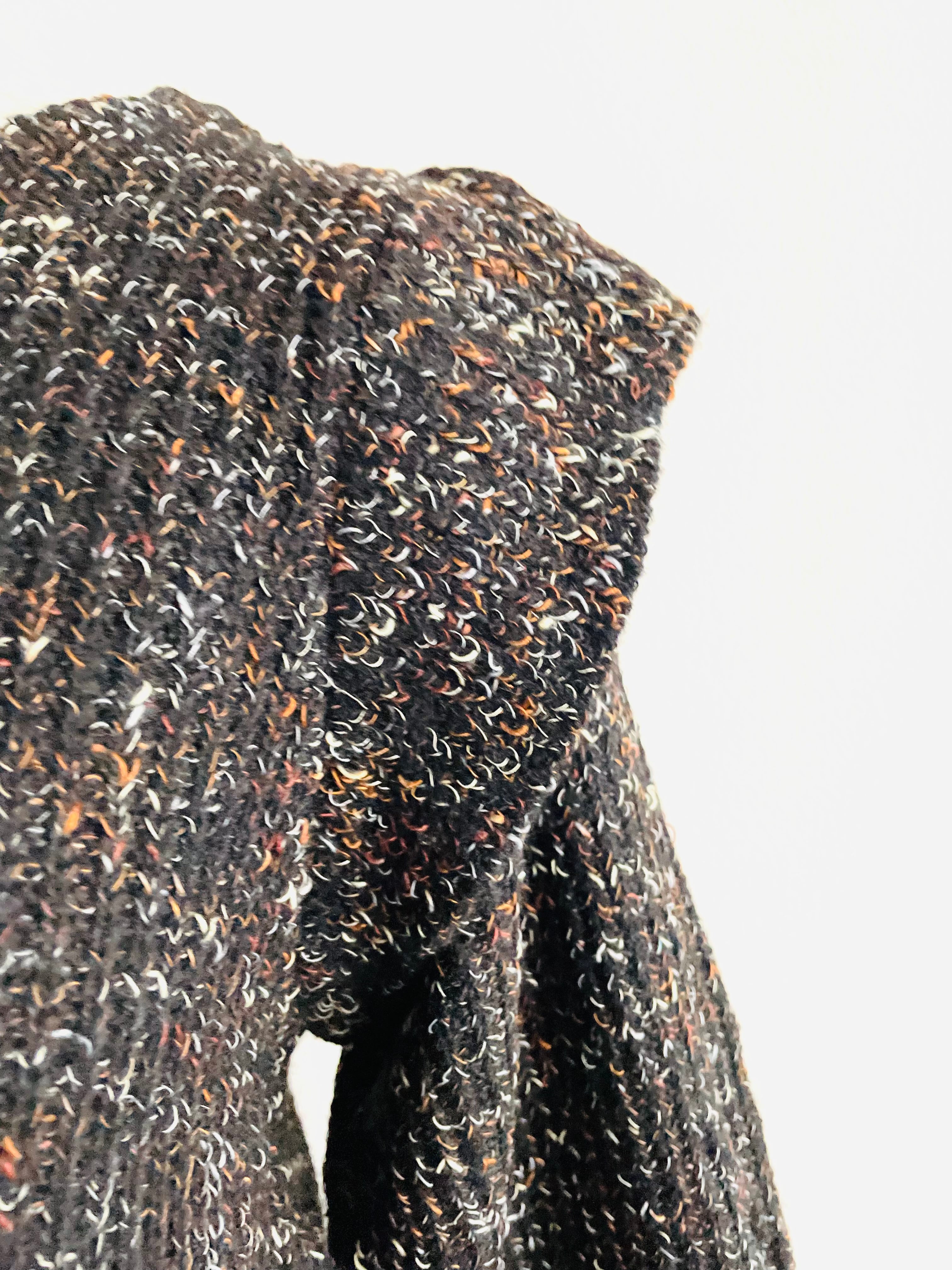 多色の糸で編まれたペプラムニット。