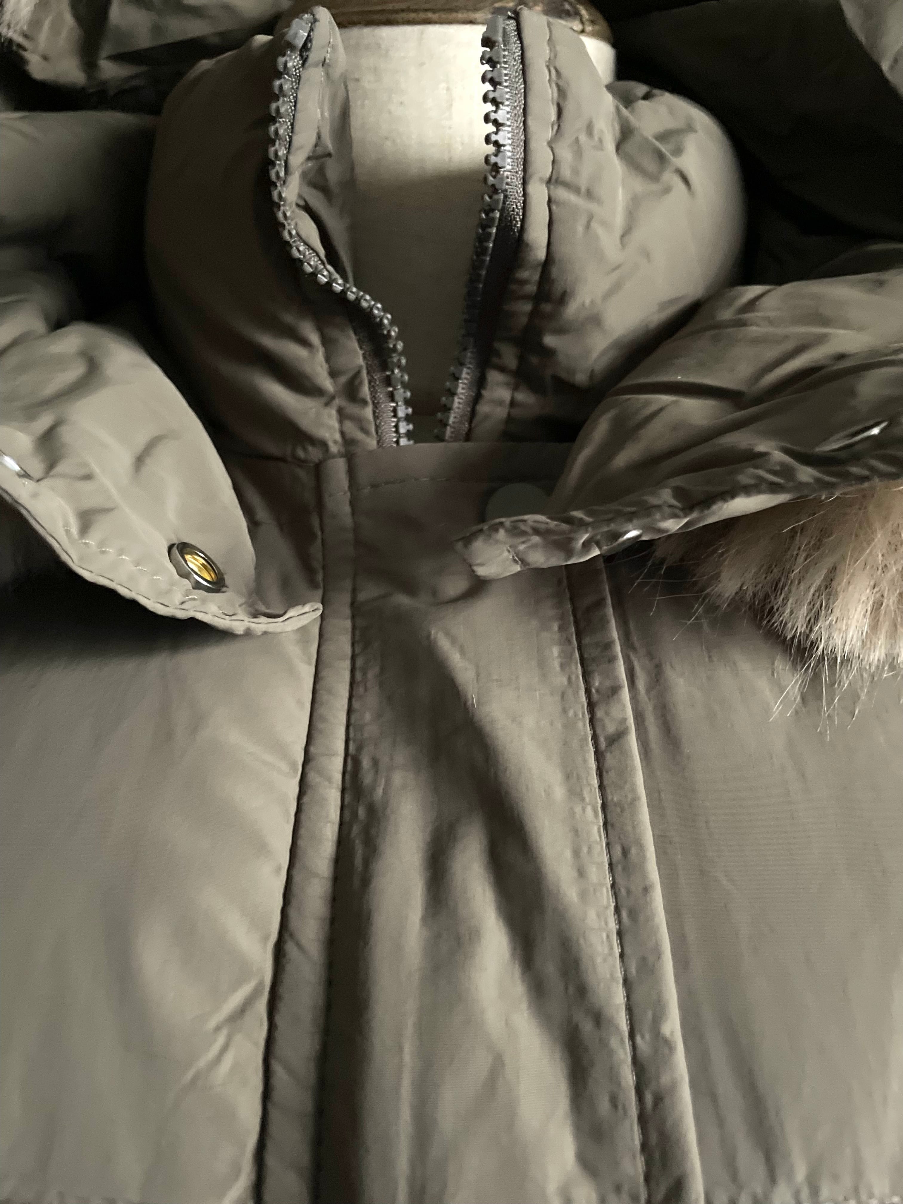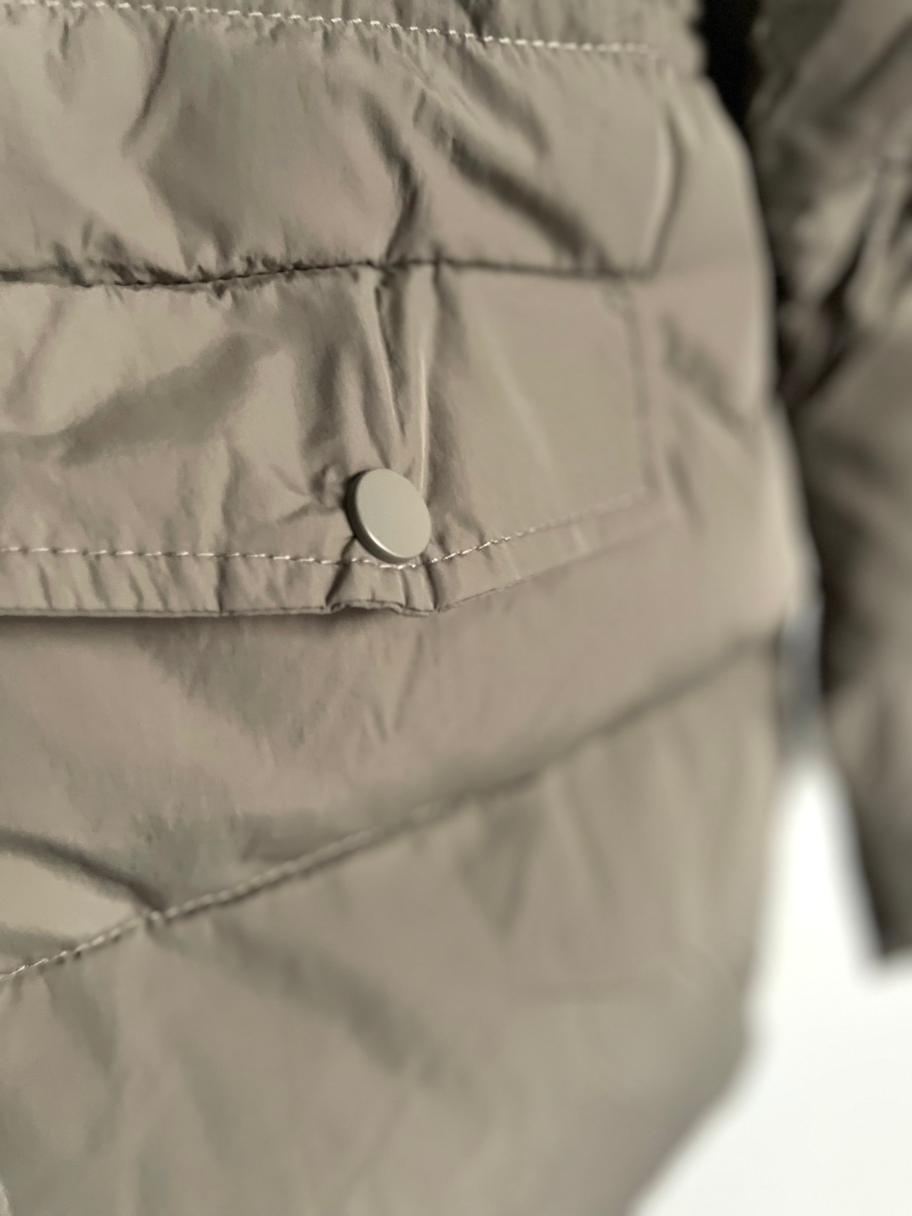 フードは高級感ある柔らかいファー付き(※フードは一体型になっていて取り外し不可能です)。フロントにある2か所のポケットのフタは飾りになっていて、そのまま出してポケットデザインにしたり、ポケットの中に入れてスマートな雰囲気にしたりと調整できます。