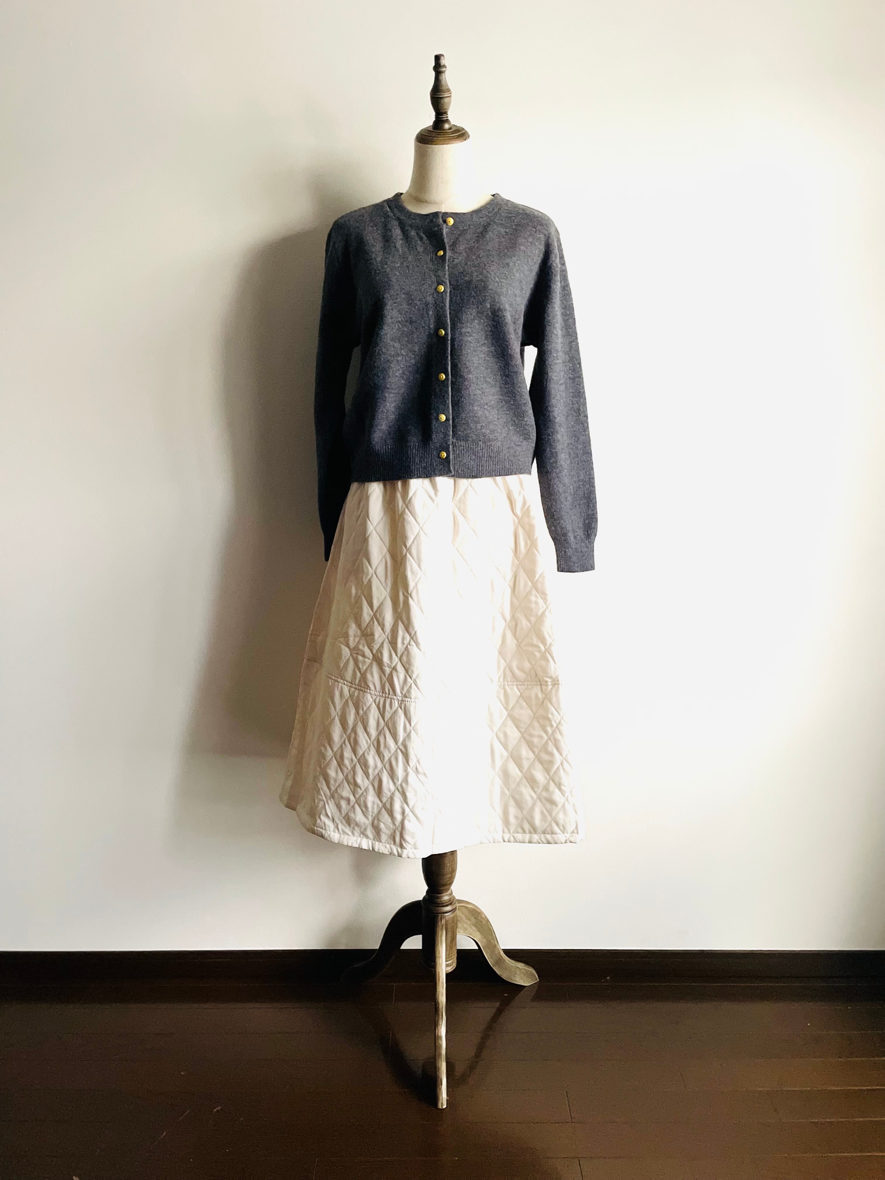 ざっくりとしたシルエットなので、ボタンを締めて一枚でゆったり着たり、ワンピースやカットソーなどに合わせても使えます。