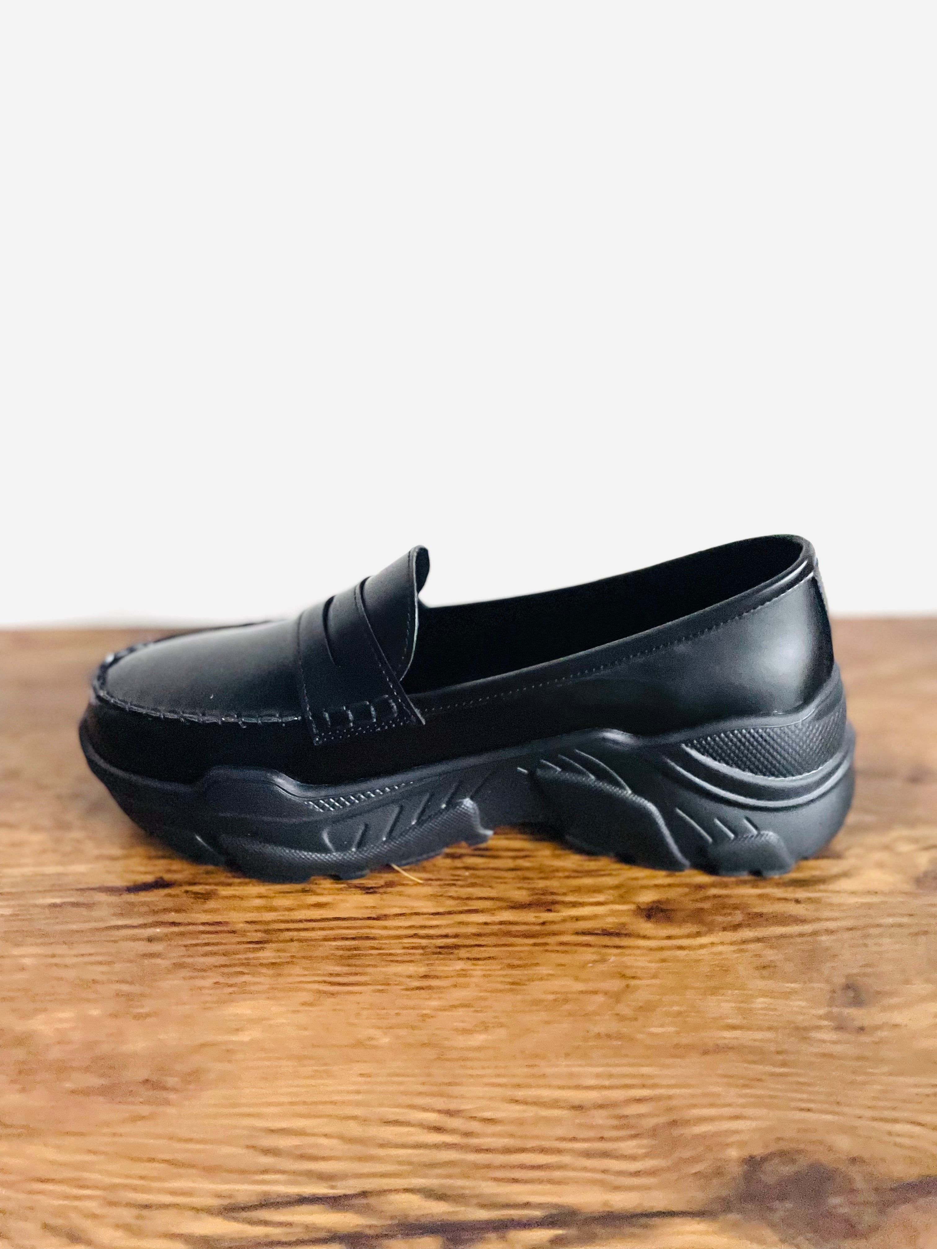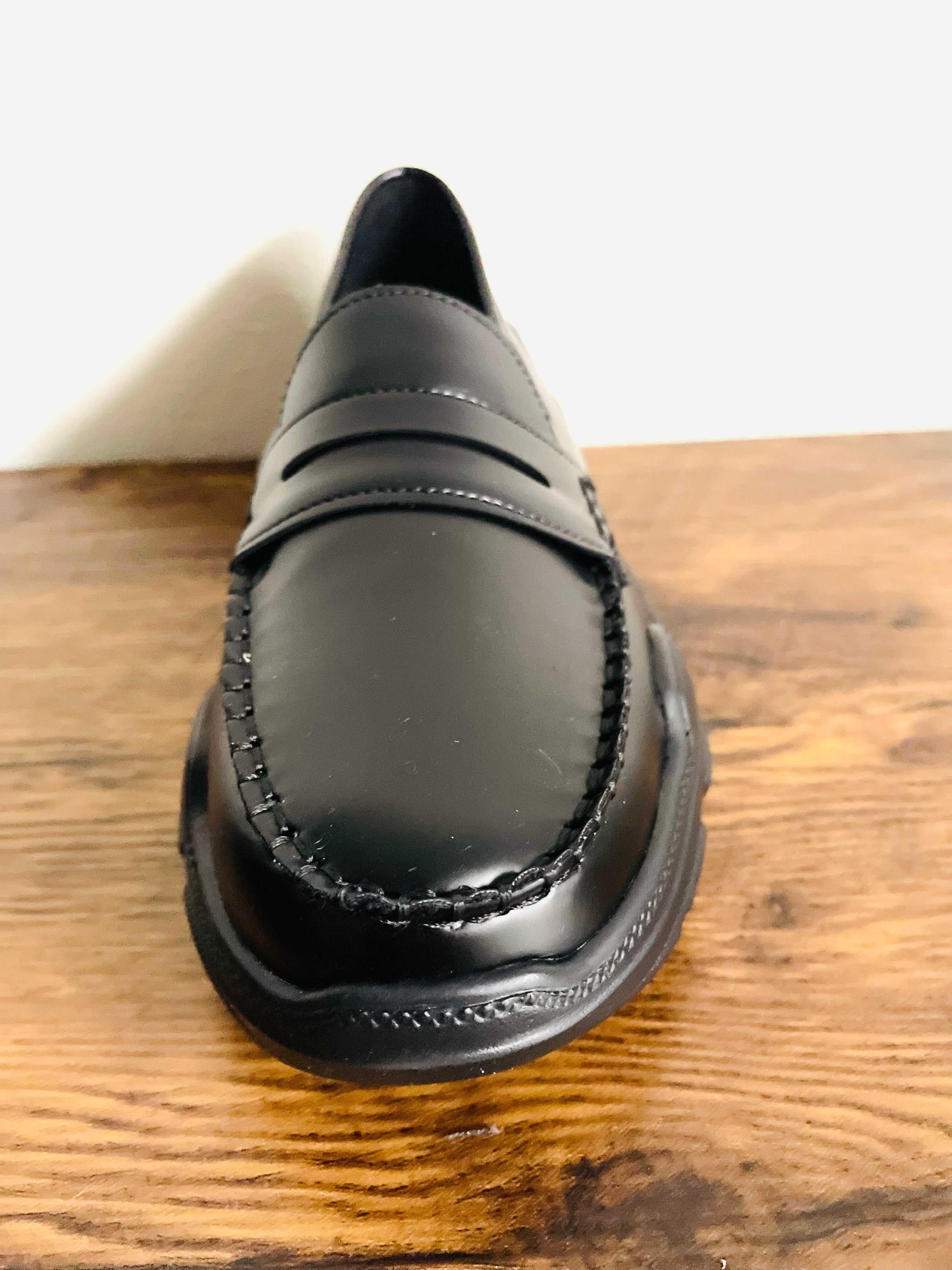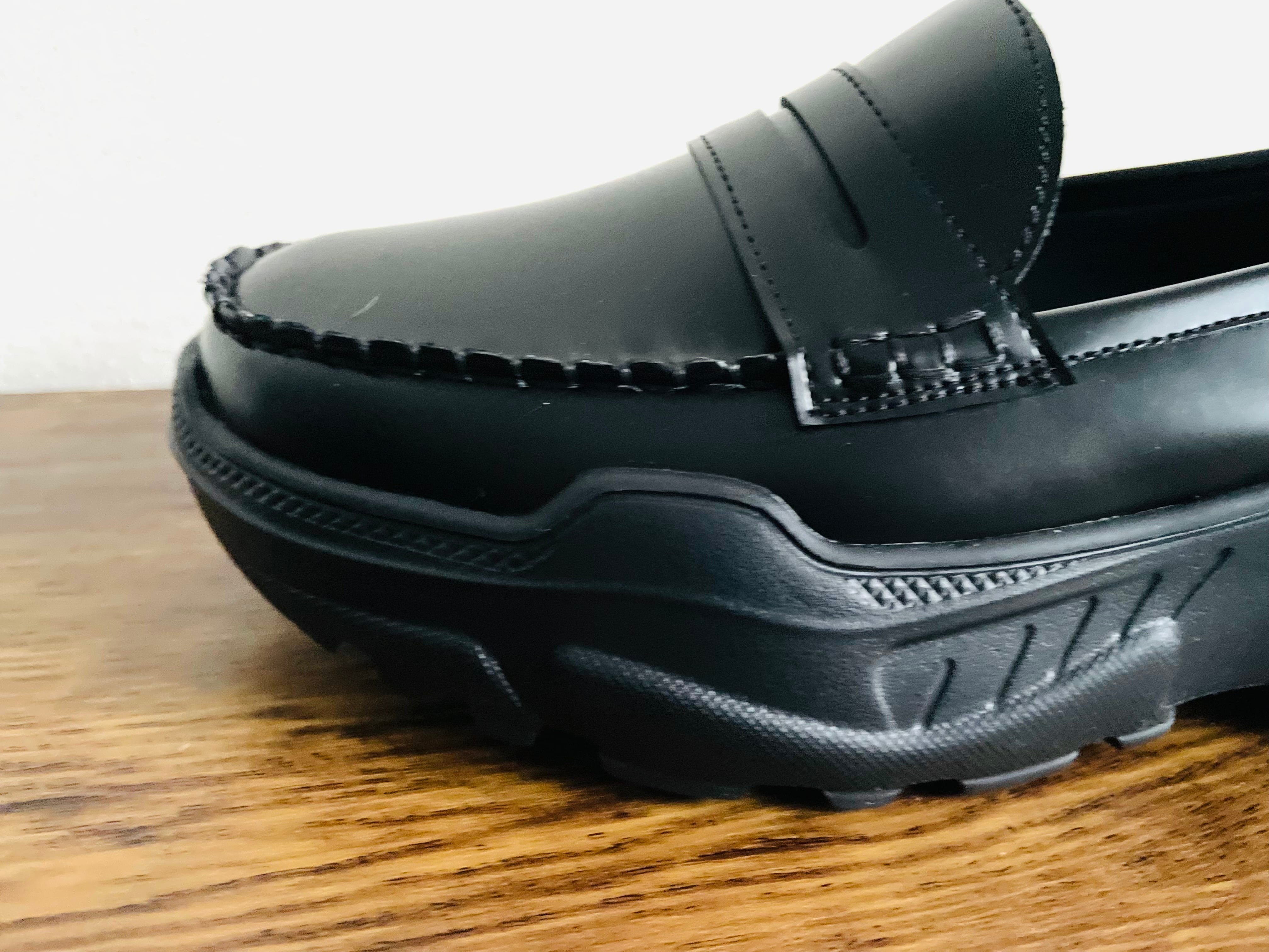 クラシックなローファーの見た目に、しっかり歩きやすいゴム底のスニーカー仕様。中敷きはクッション性があるので柔らかく、さらに厚底ソールタイプ(5㎝)なので歩きやすさも抜群です。