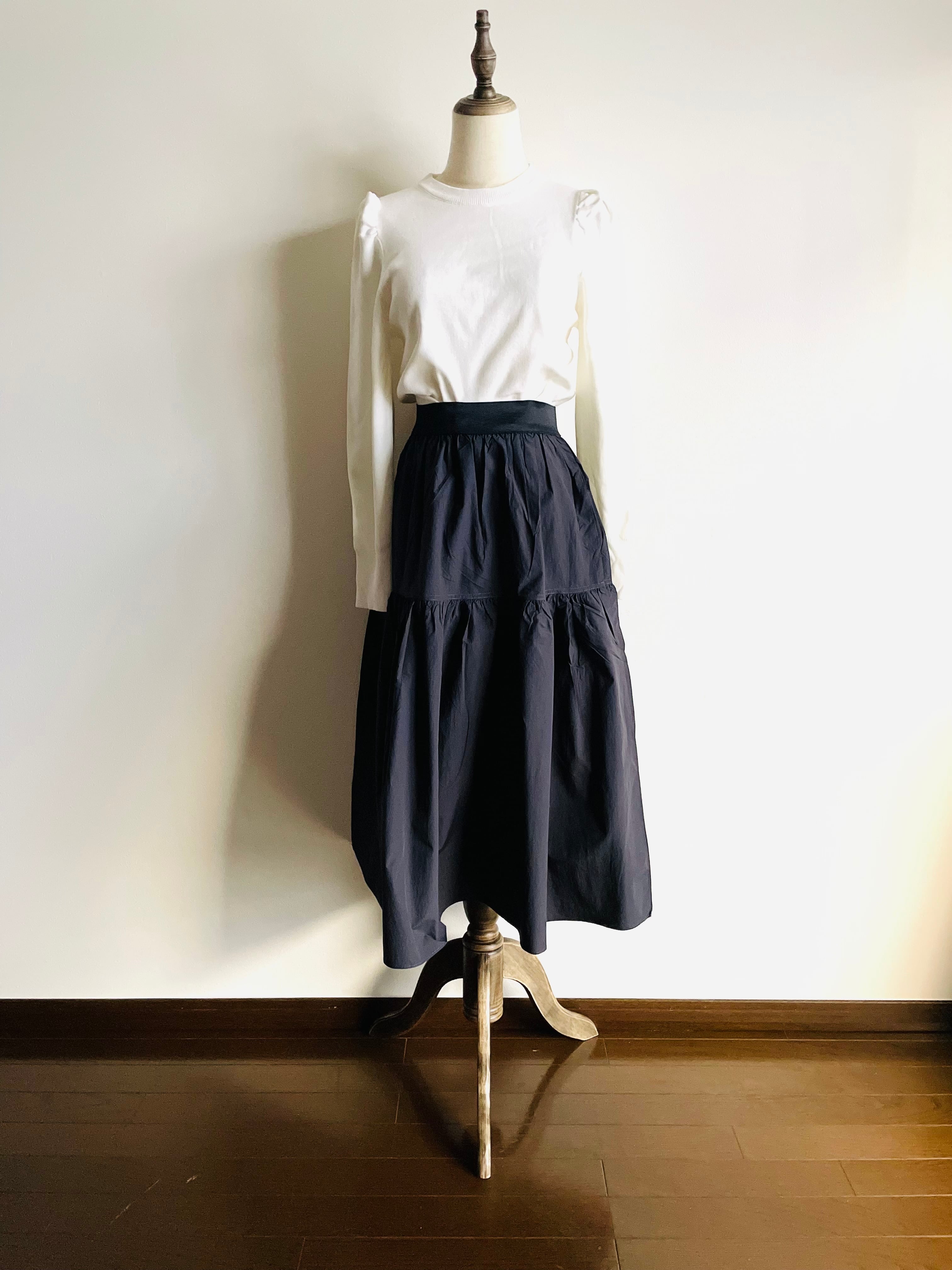 張りがあってしっかりした長袖ニットは春の装いに大活躍する一枚です。