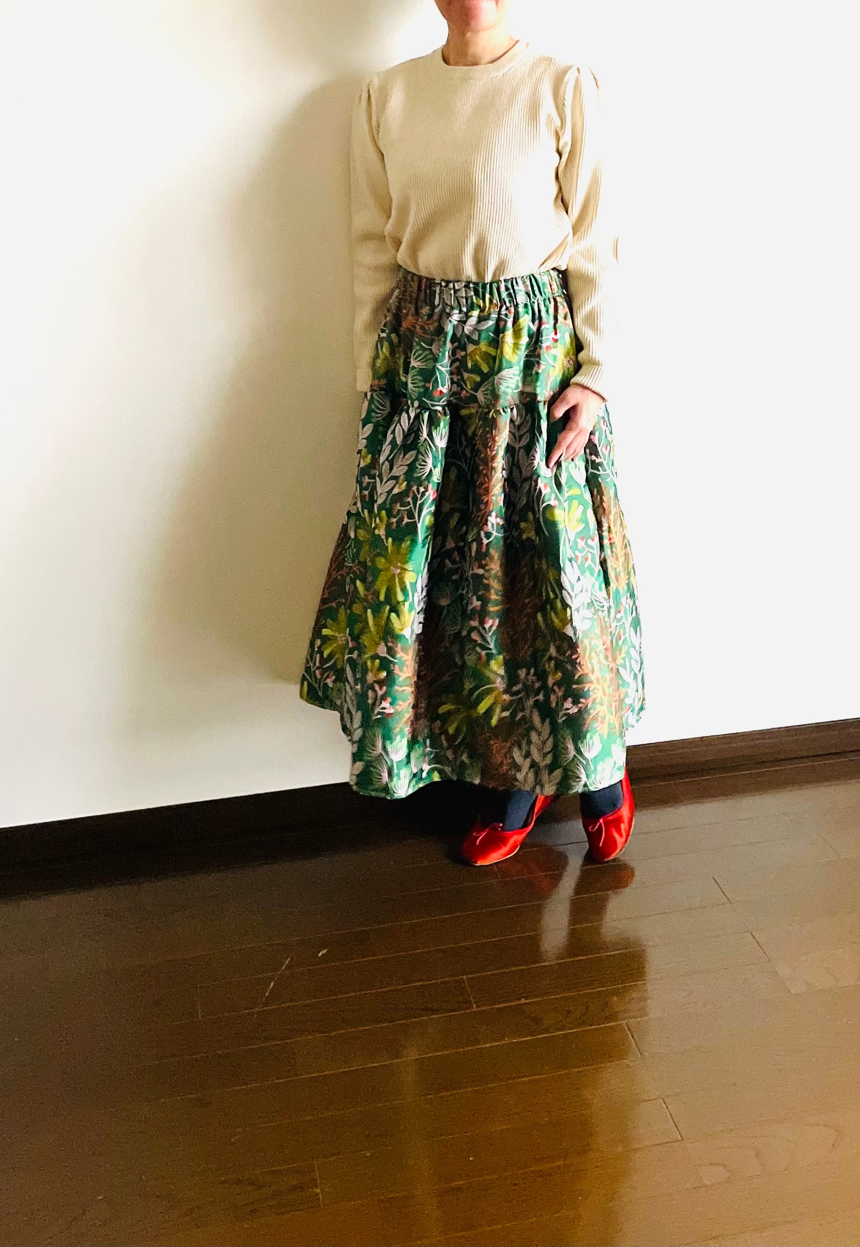 【再入荷!】フラワーモス_ジャガード織りティアードスカート