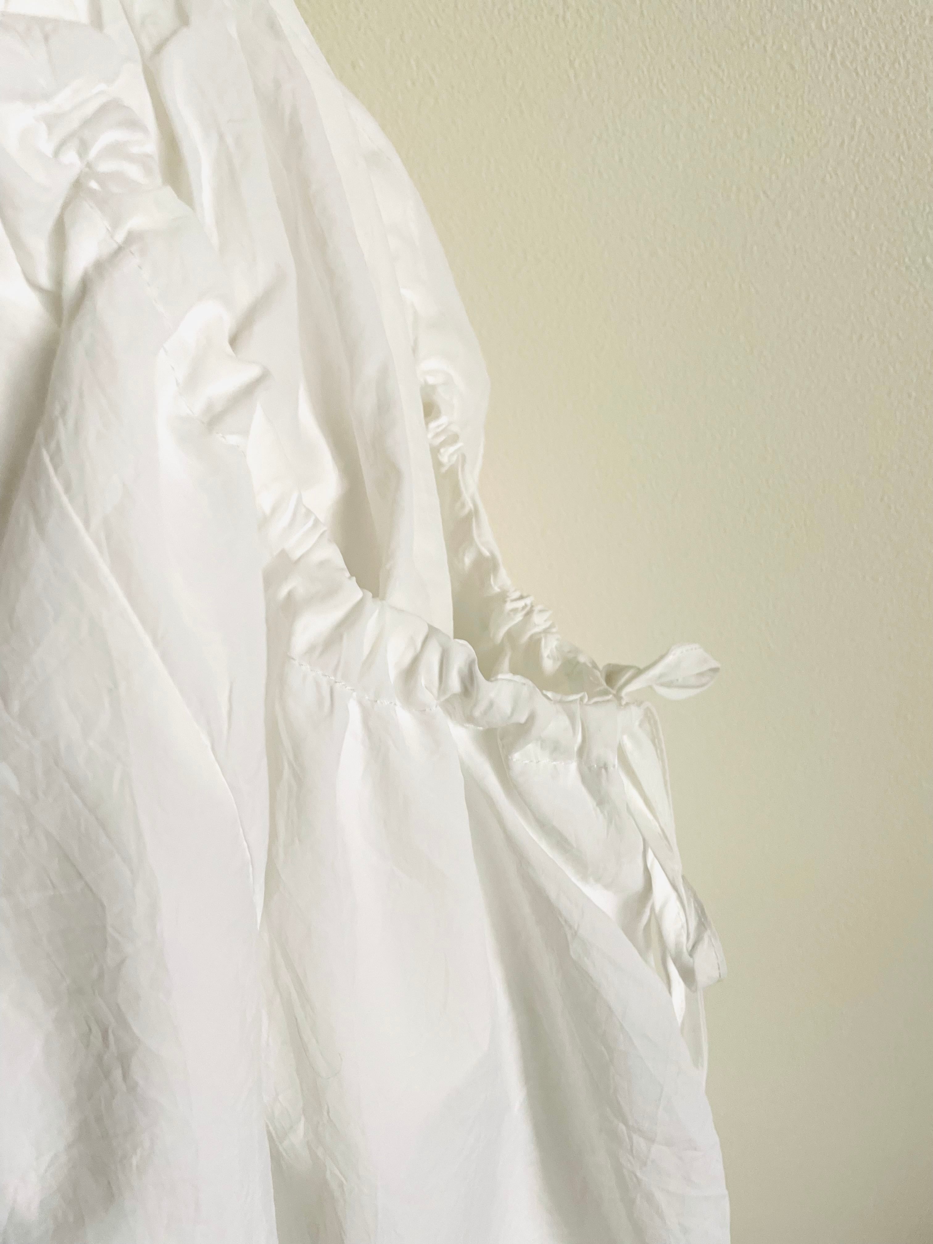 リボンの紐を絞ったギャザーがオシャレなシルエットを演出します。