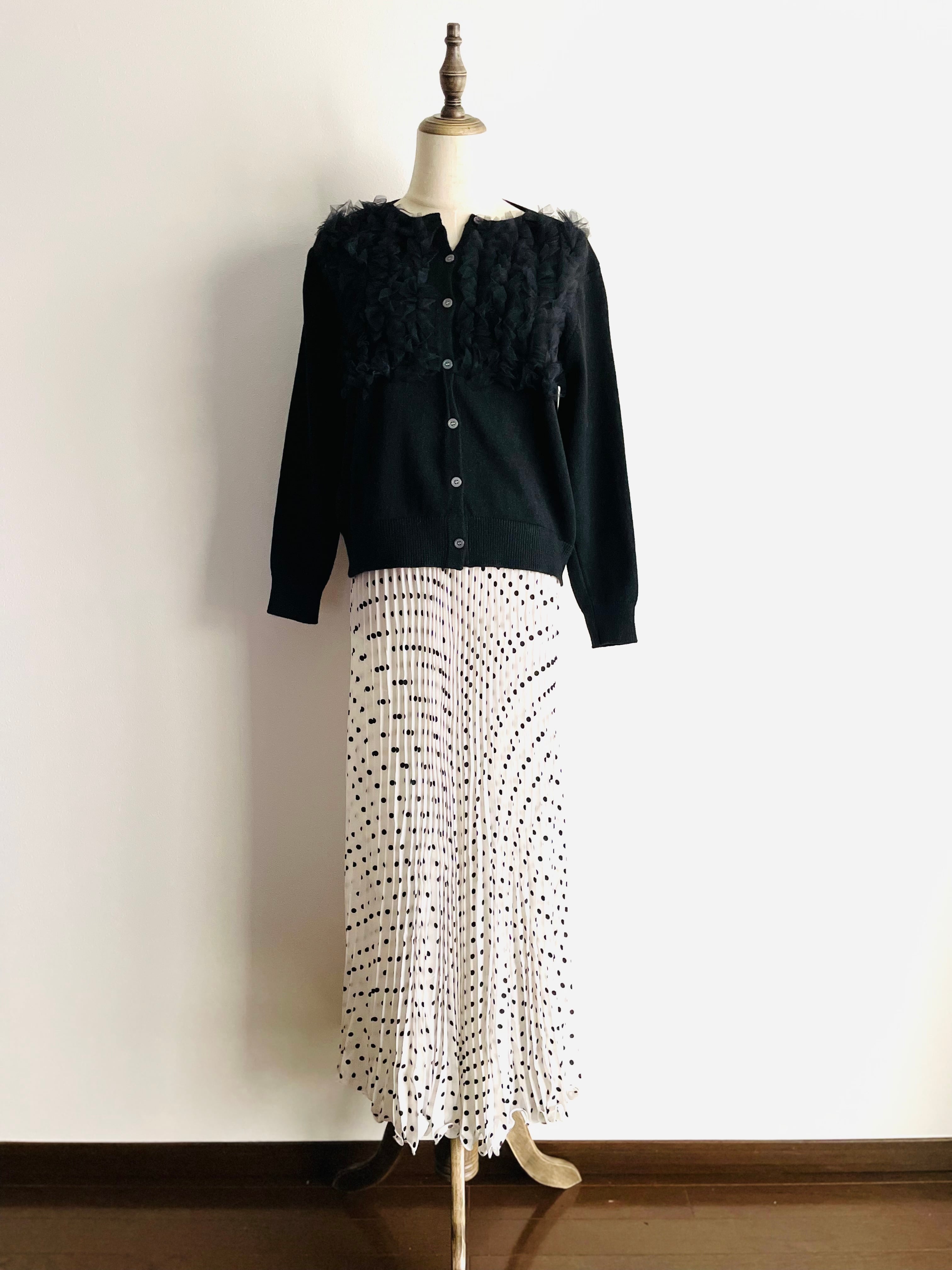 チュールレース_ニットカーディガン