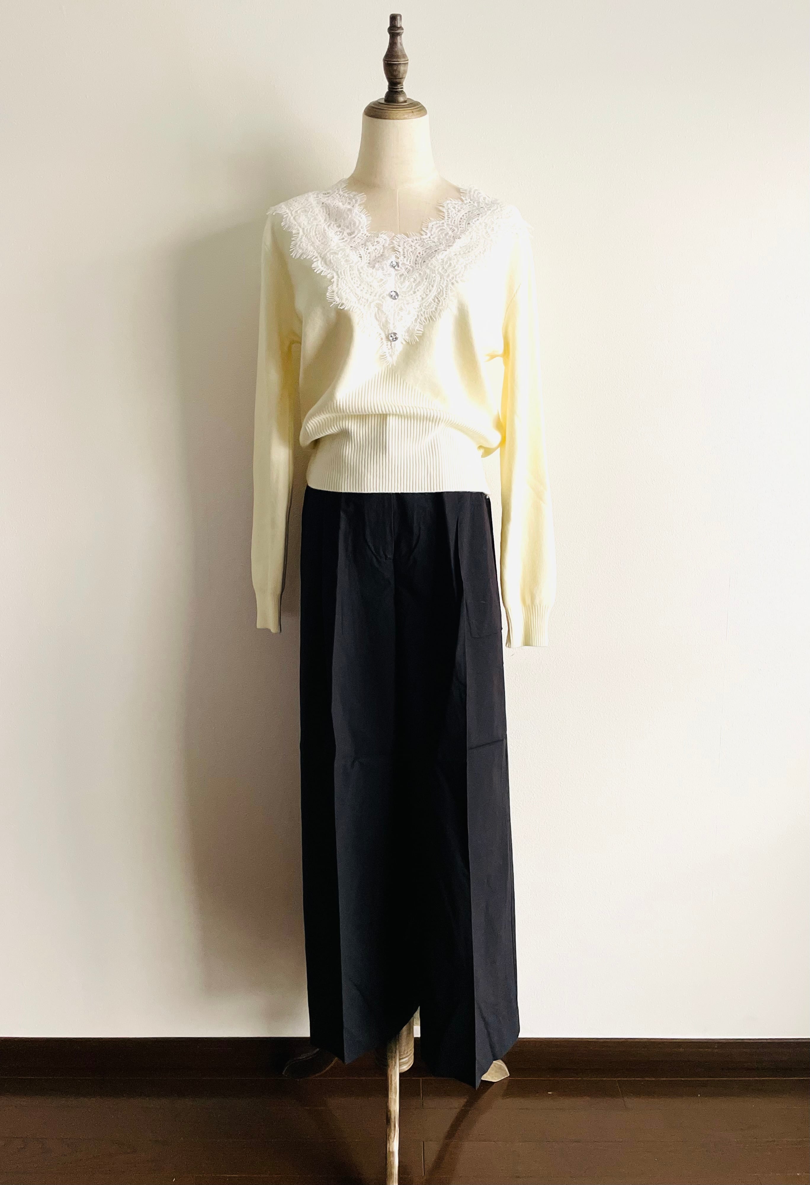 Vネックレース_ニット