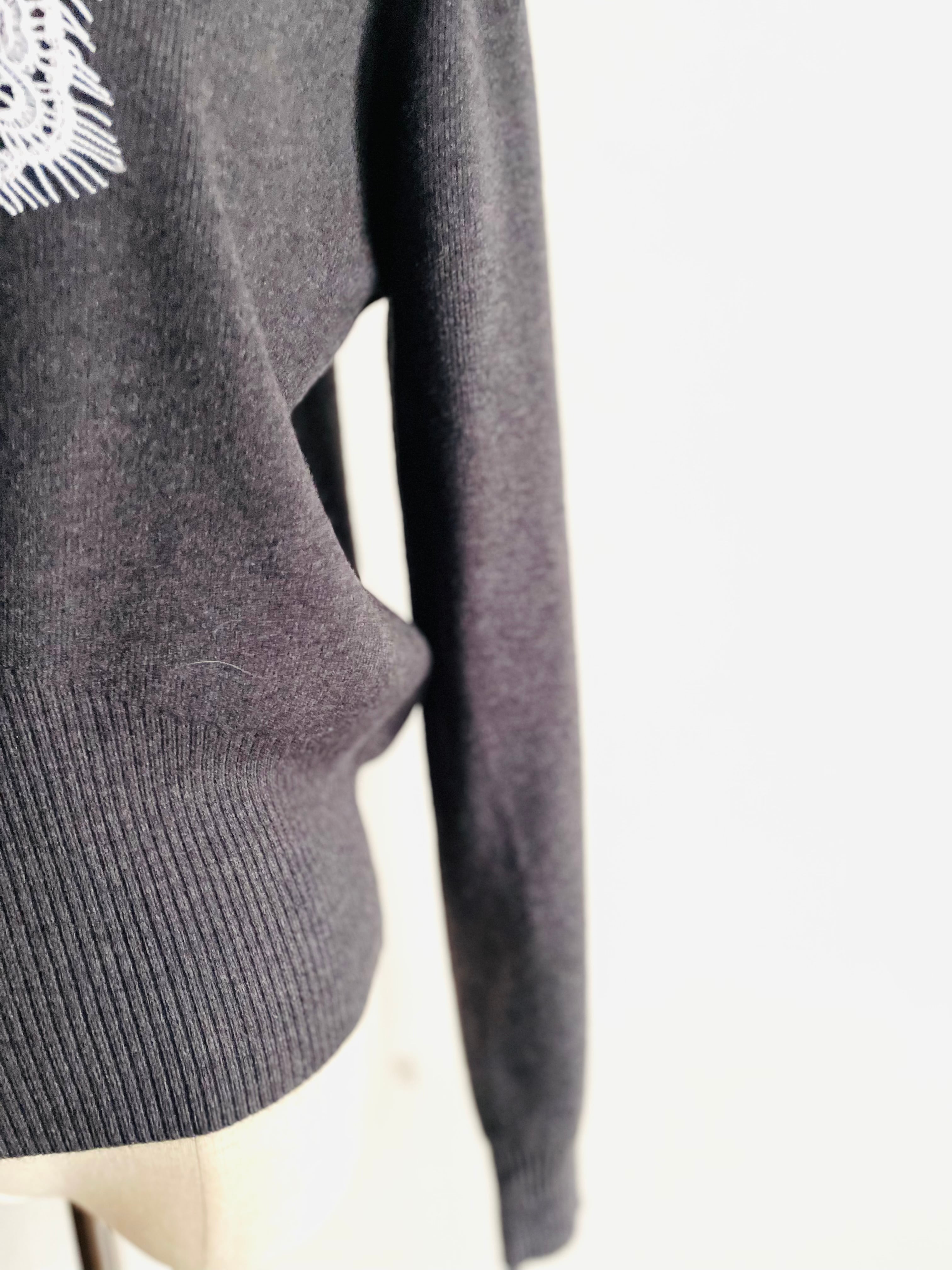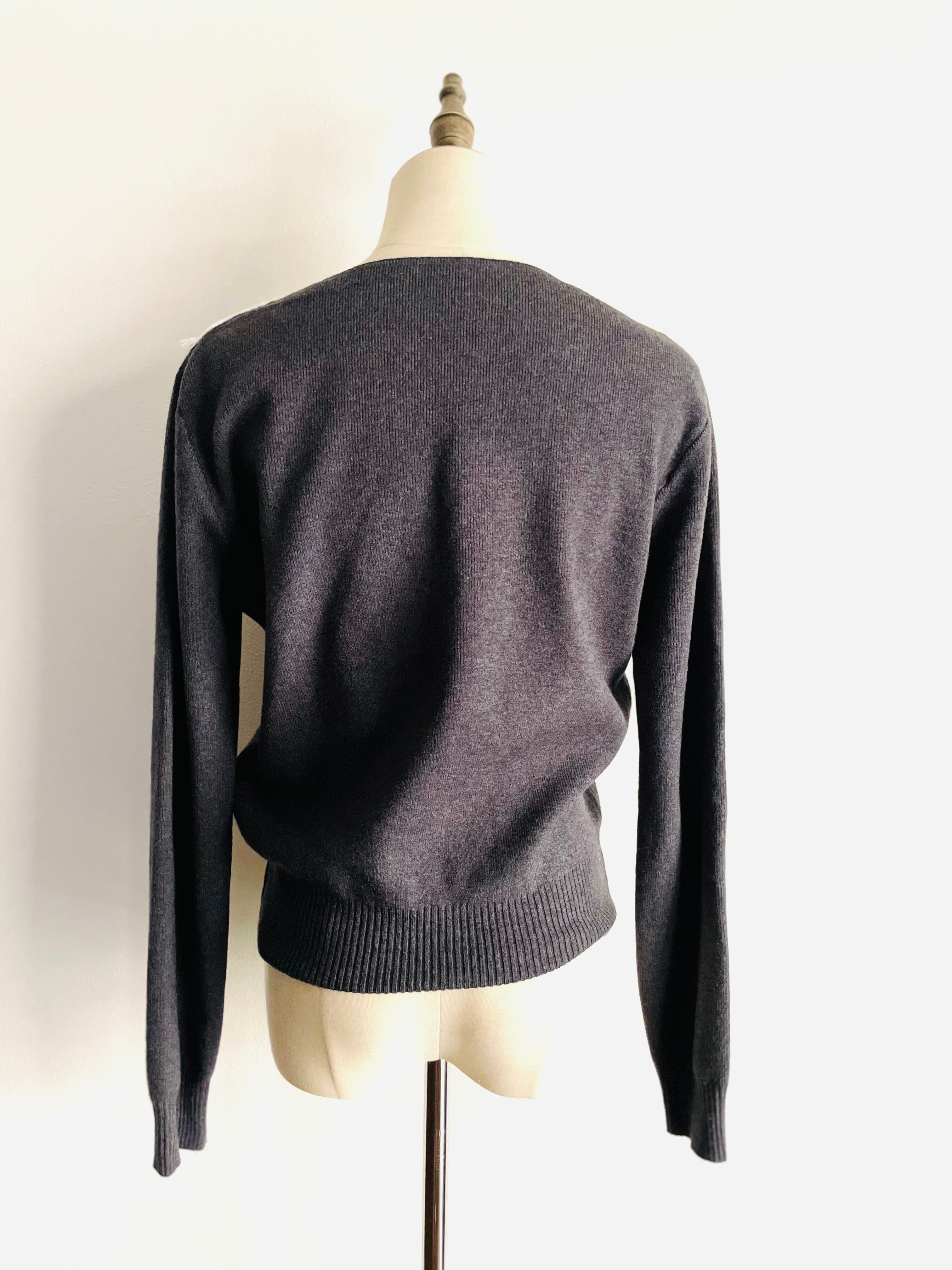 Vラインのレースが上品な印象のVネックニット。