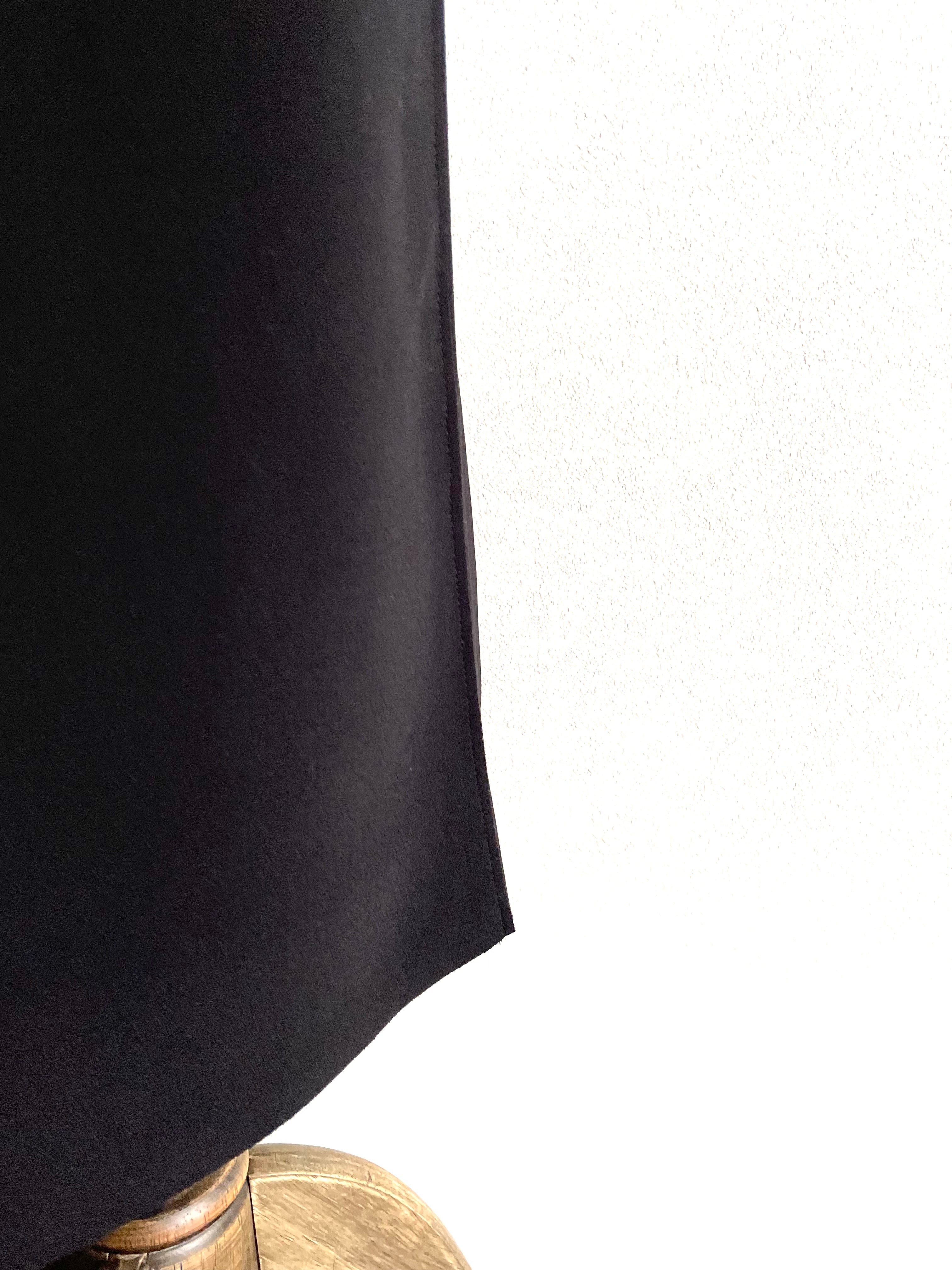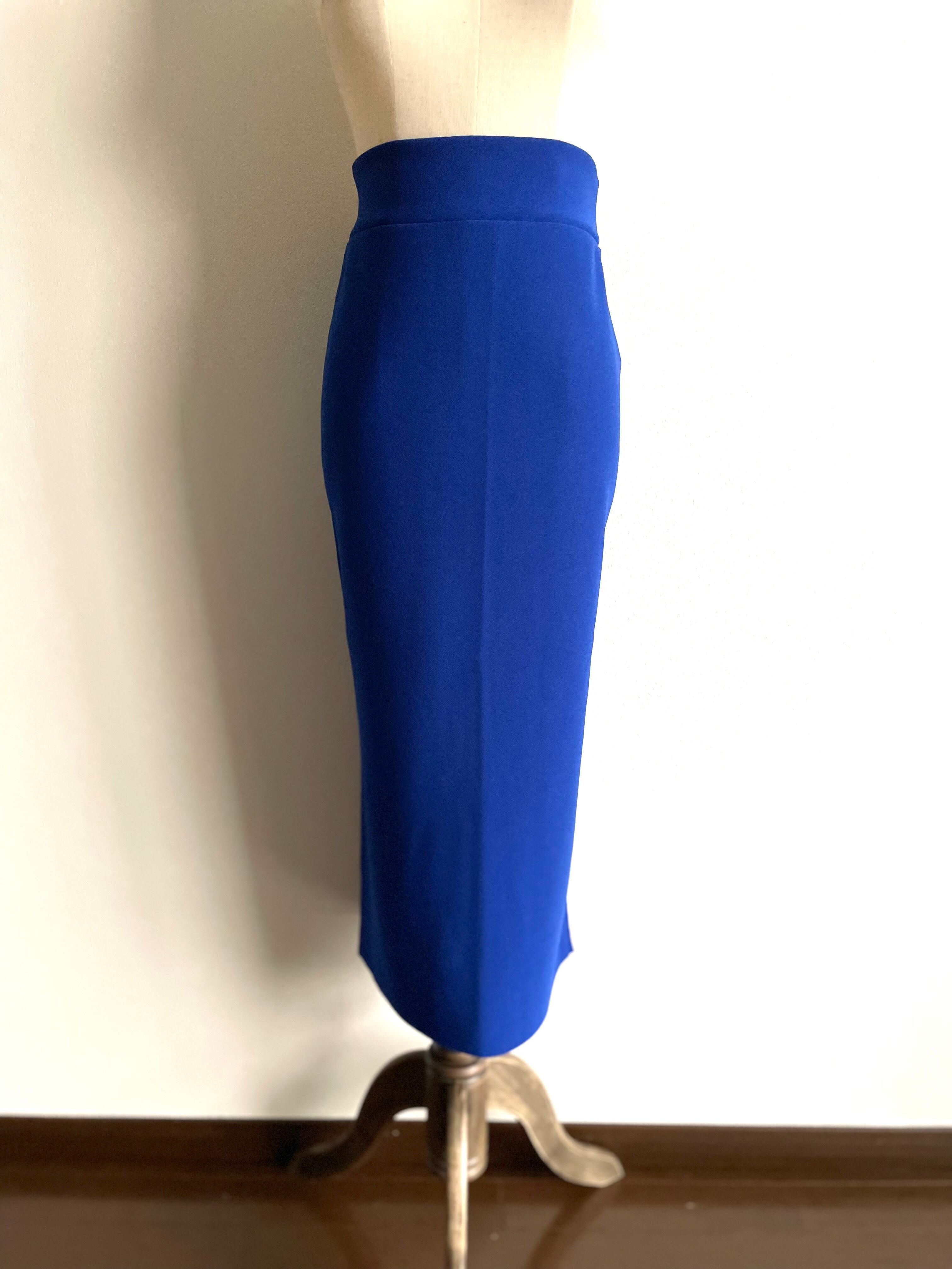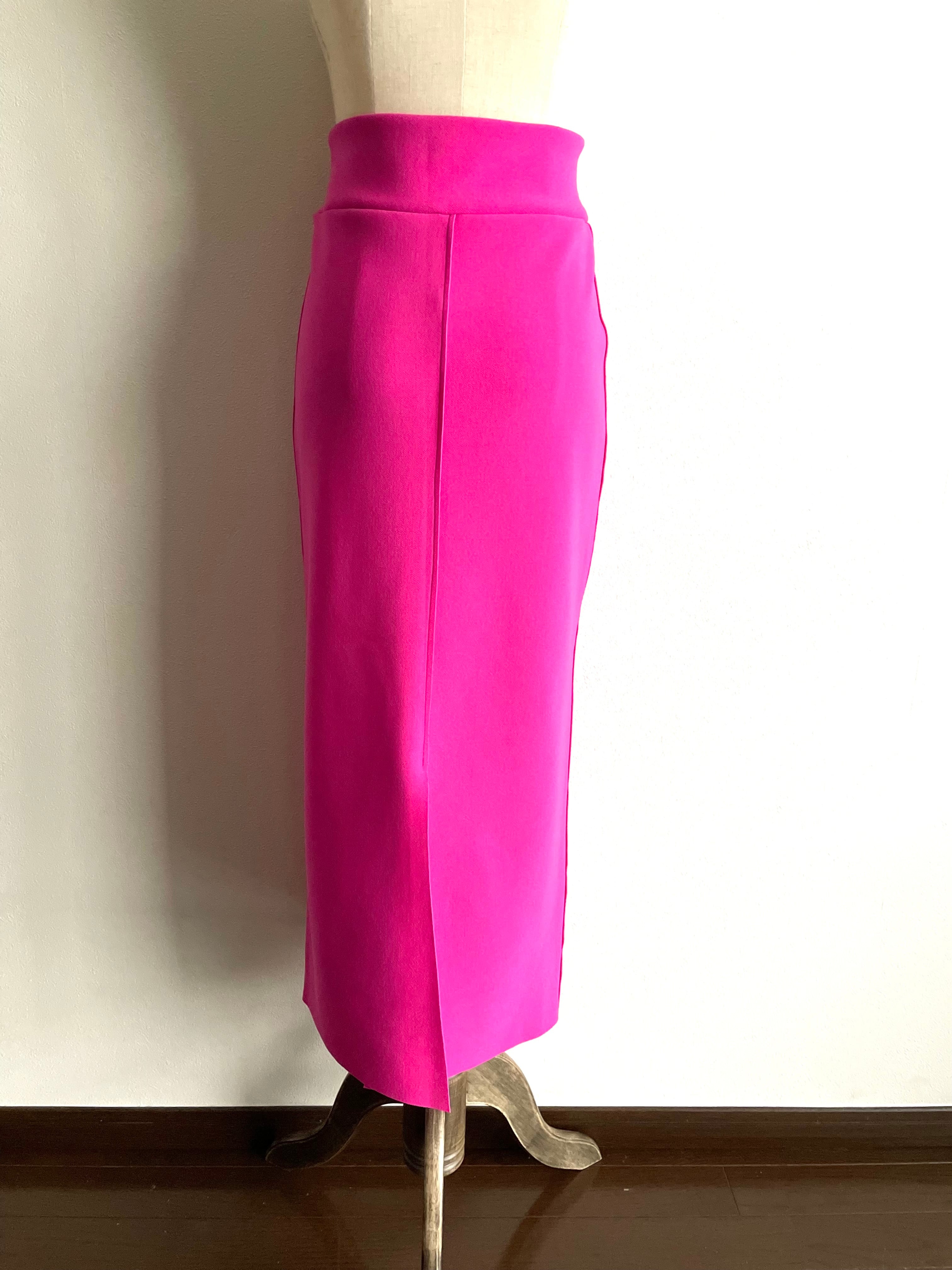 ウェットスーツのようなポリエステルのジャージー素材で、全体にストレッチが効いたタイトロングスカート。