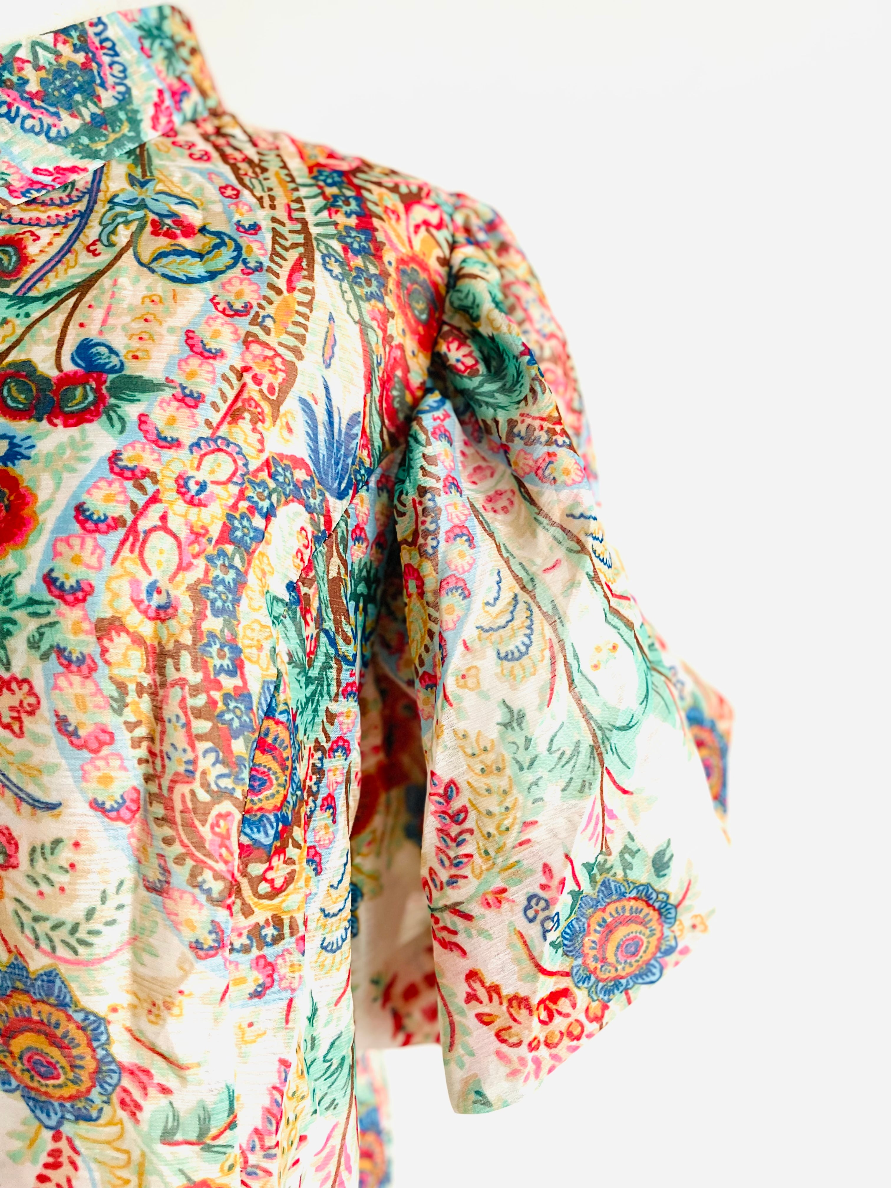 繊細に描かれたカラフルな花柄が目を惹き、1枚でコーディネートの主役になるアイテムです。