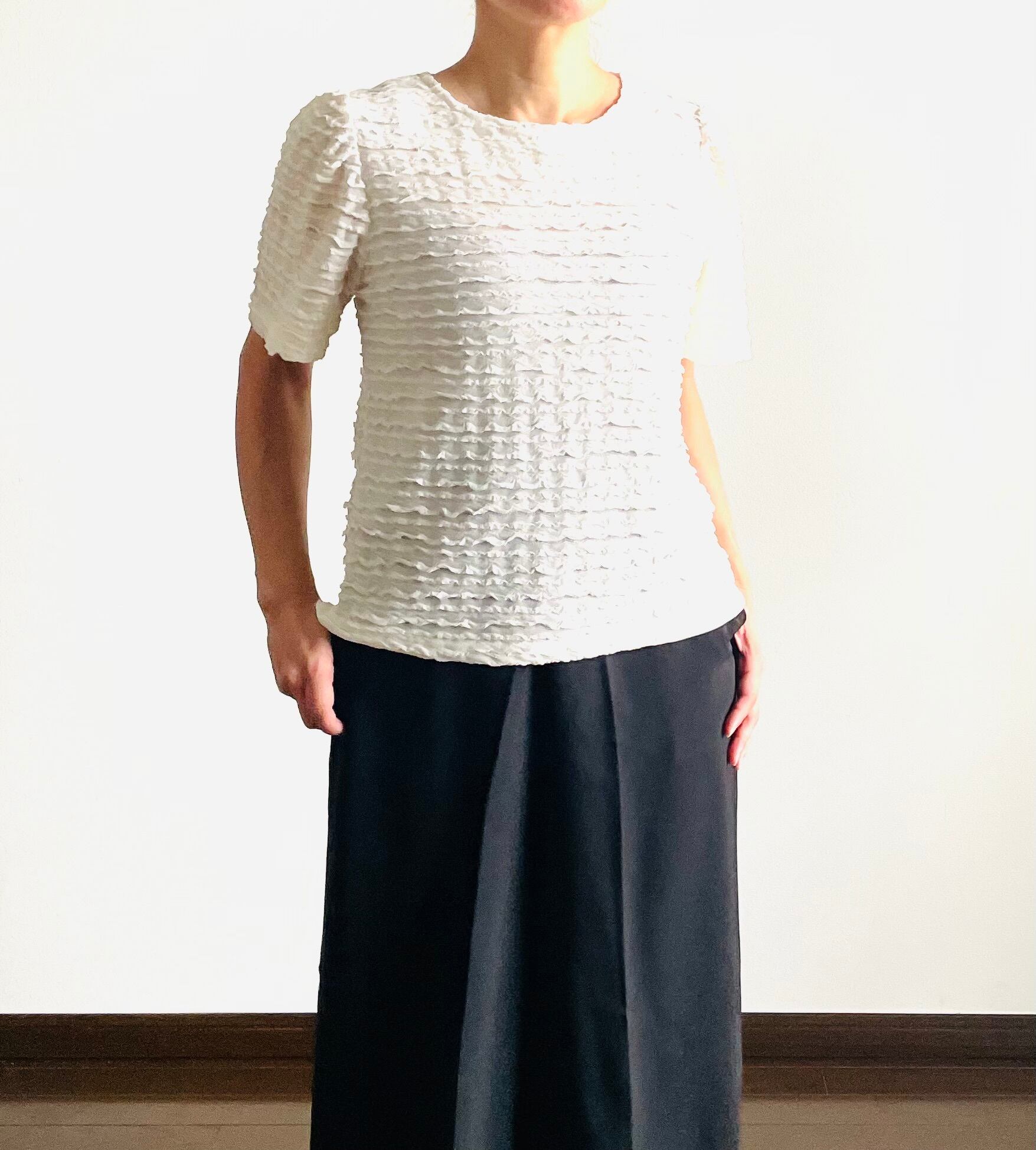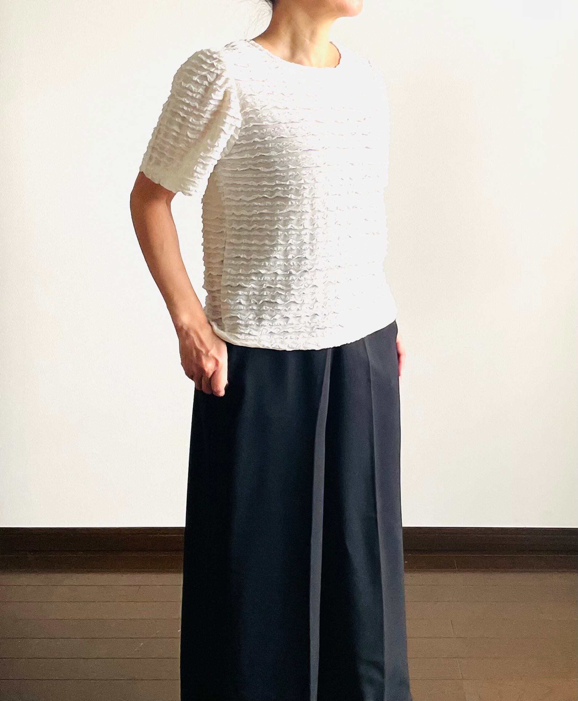 細かいフリルが特徴の半袖カットソー。
