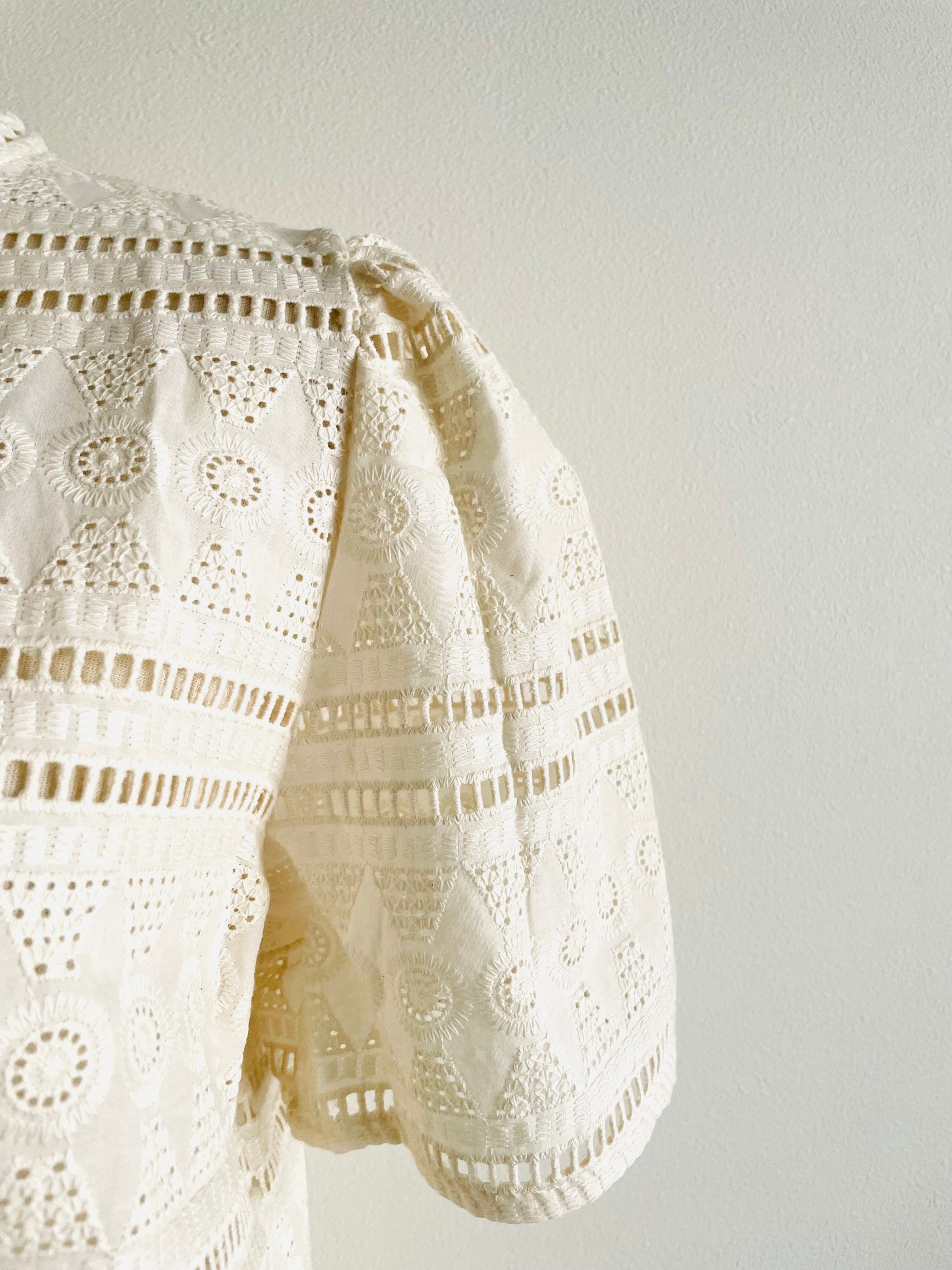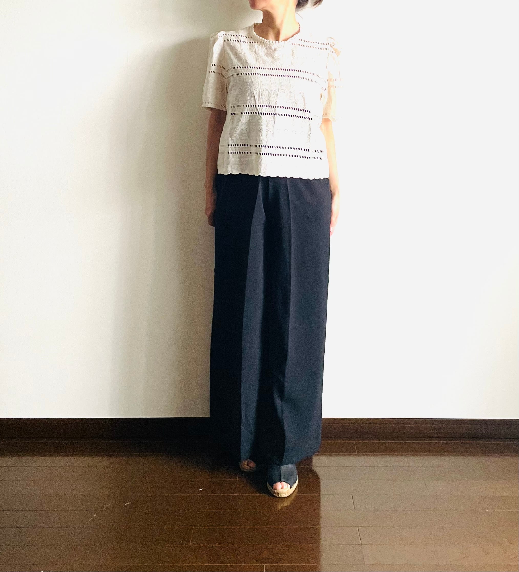 コットン100%の軽くて上質な素材で、肩のパフスリーブが大人可愛い一枚です。