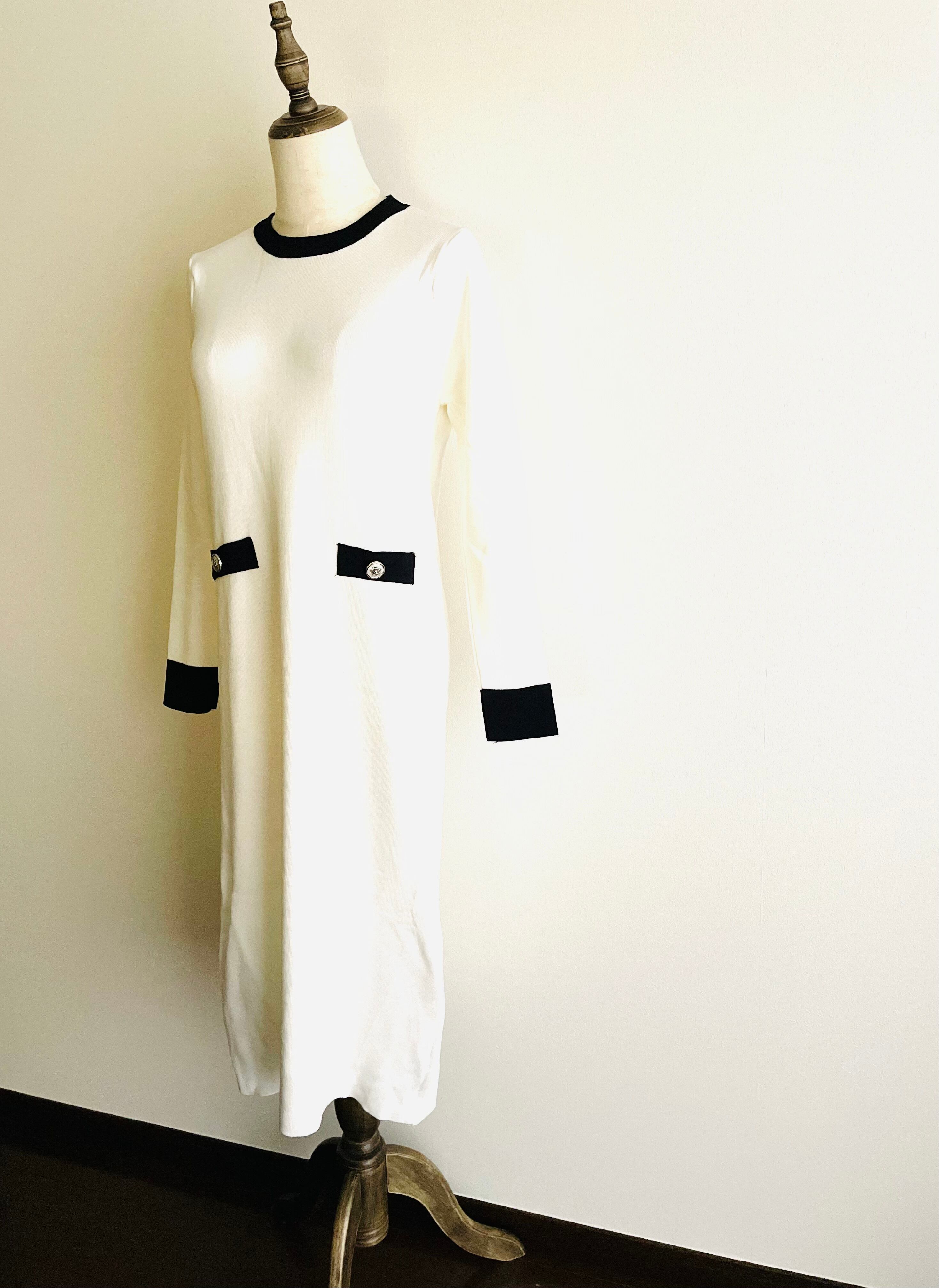 レーヨンのサラっとしたニット素材で着心地も良く、ストレートのシルエットが上品な印象に。