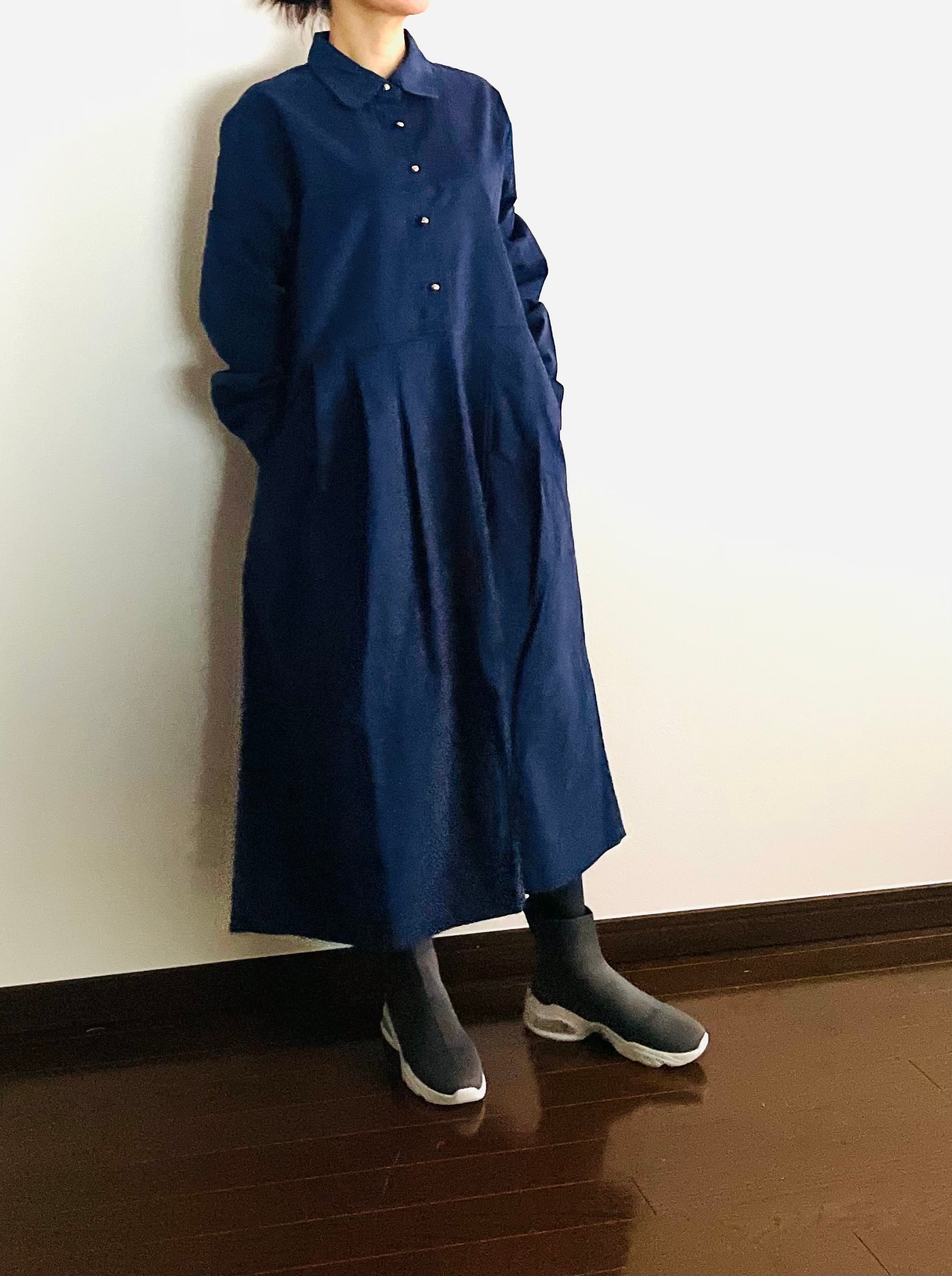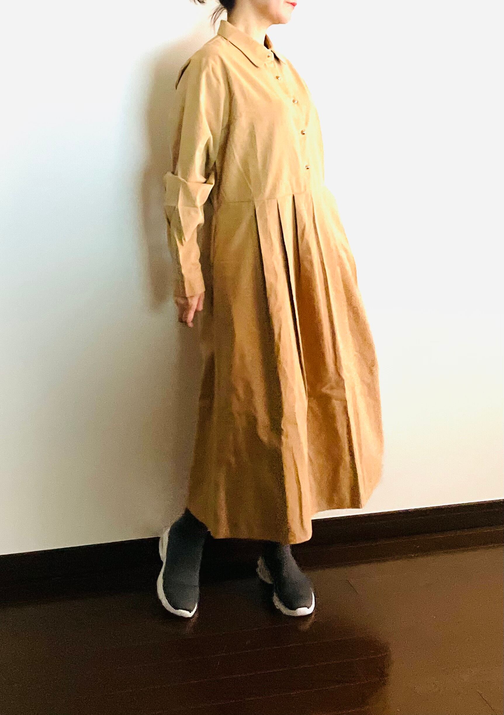 ボックスプリーツがふんわりとしたシルエットになり、ゆったりと着られます。